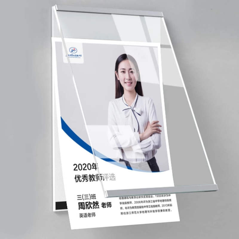 亚克力a4卡槽产品介绍广告牌个人简介展示牌团队员工风采展示墙贴教练形象墙a4展示框企业照片墙文化墙公告栏