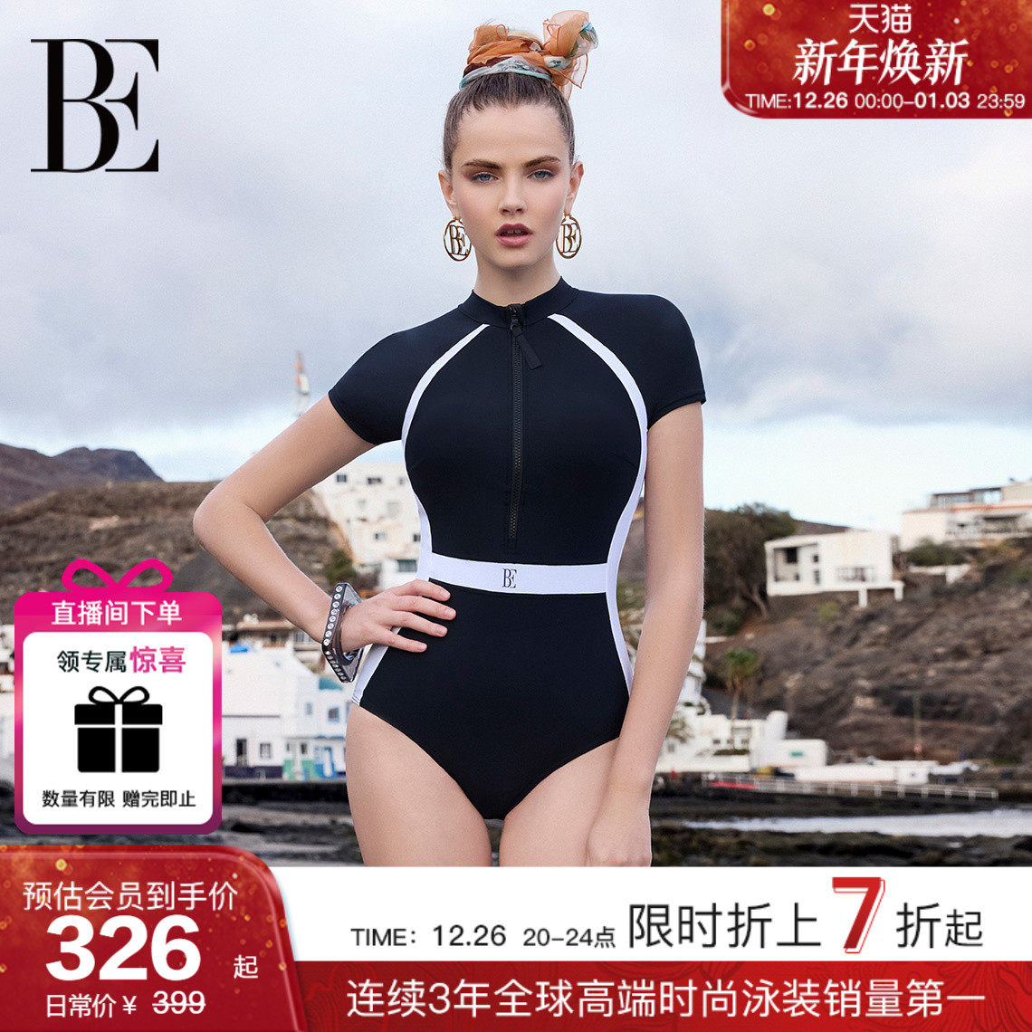 BE范德安2025新品小黑裙系列女士三角连体泳衣短袖防晒度假温泉