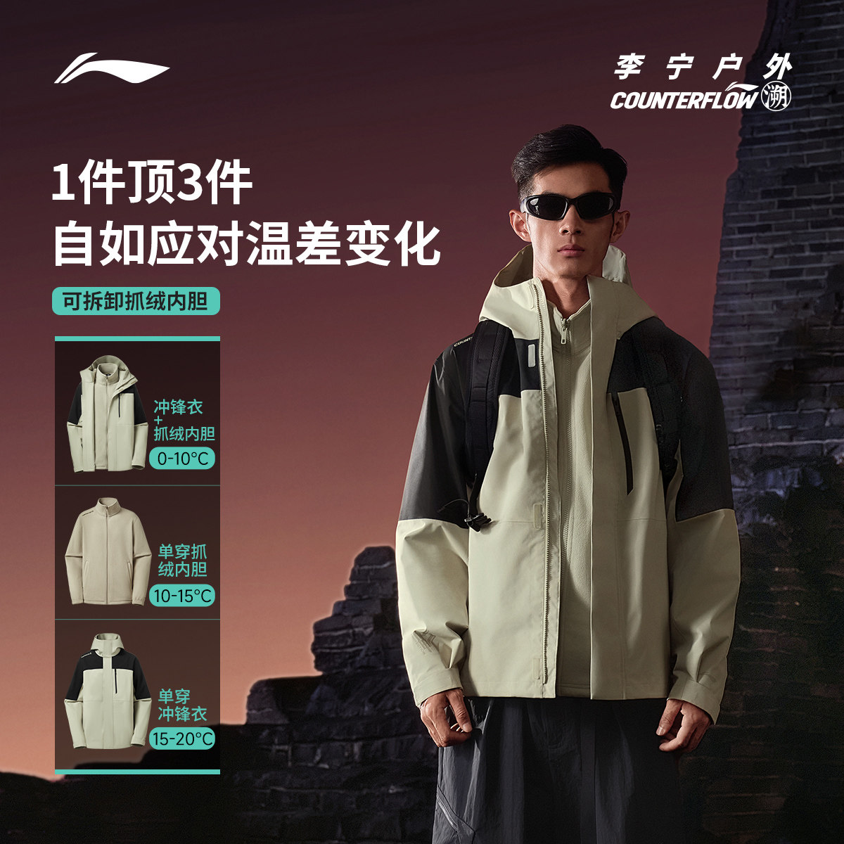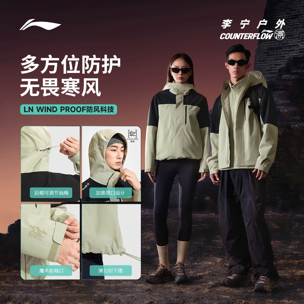 李宁户外CF溯|万龙甲冲锋衣三合一男女宽松冬季上衣加绒运动服