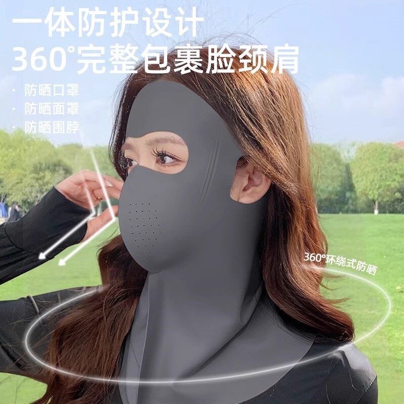 全脸防晒面罩脸基尼女防紫外线夏季冰丝遮脖子遮阳口罩护颈一体