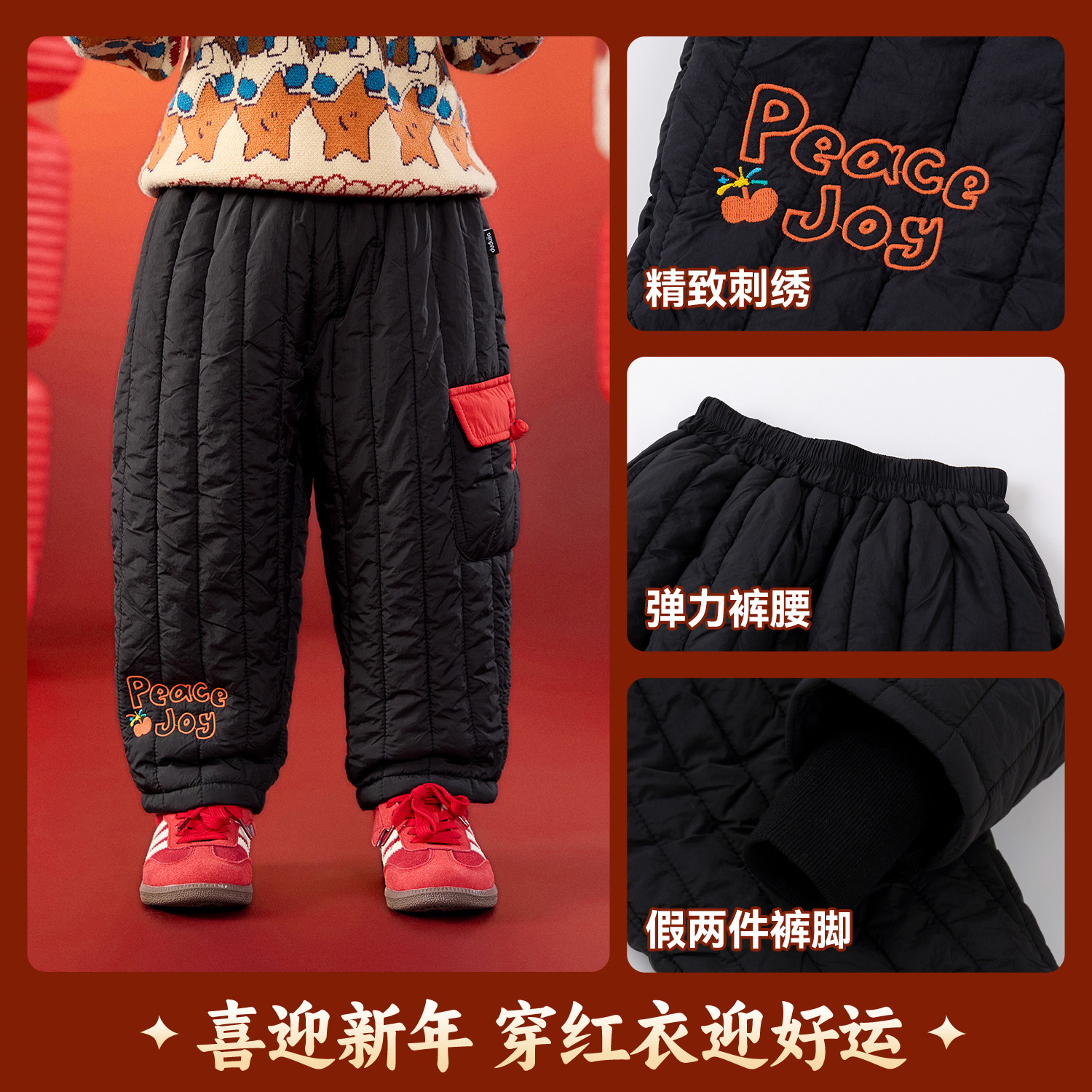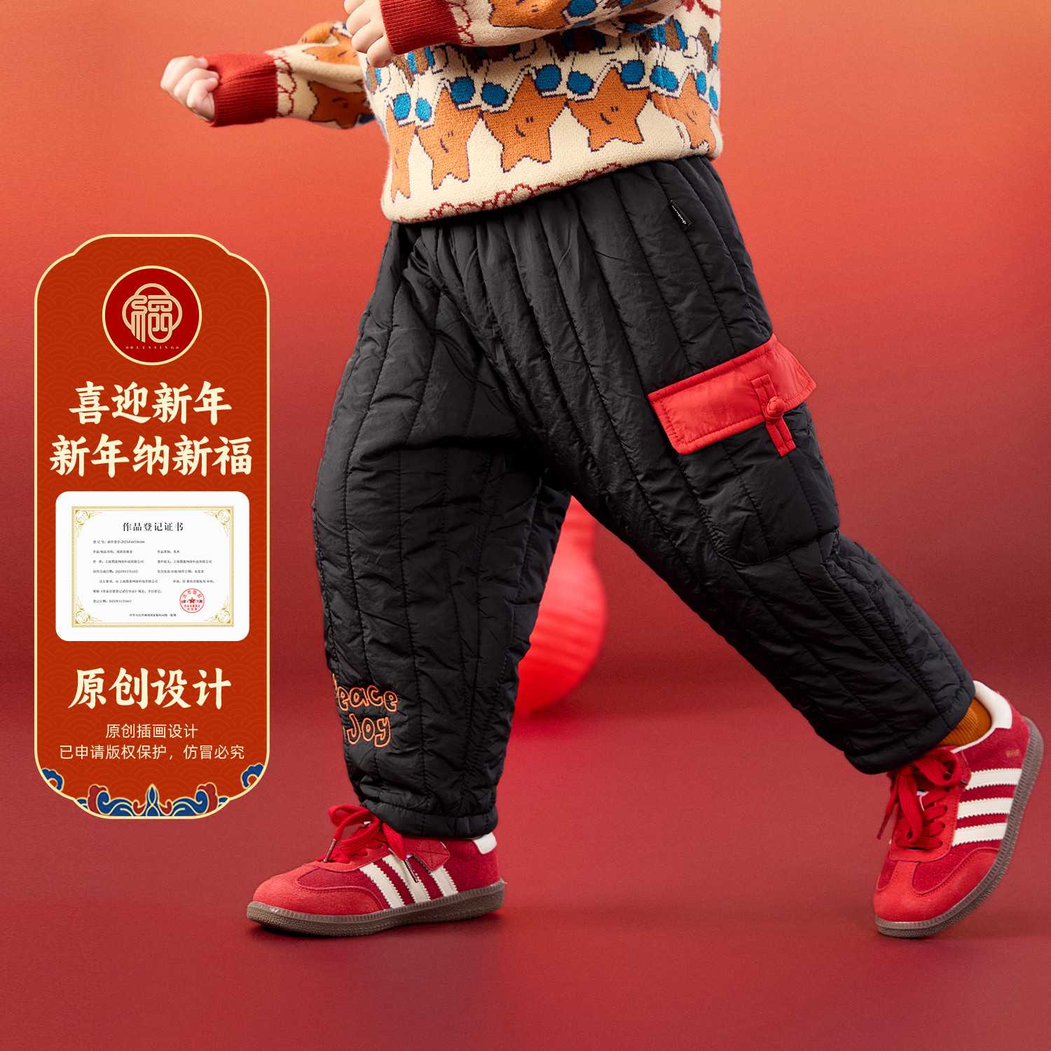 嘟嘟家宝宝唐装裤子冬季加厚儿童拜年服喜庆长裤男童冬装棉裤年装