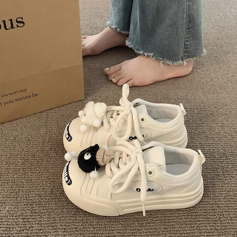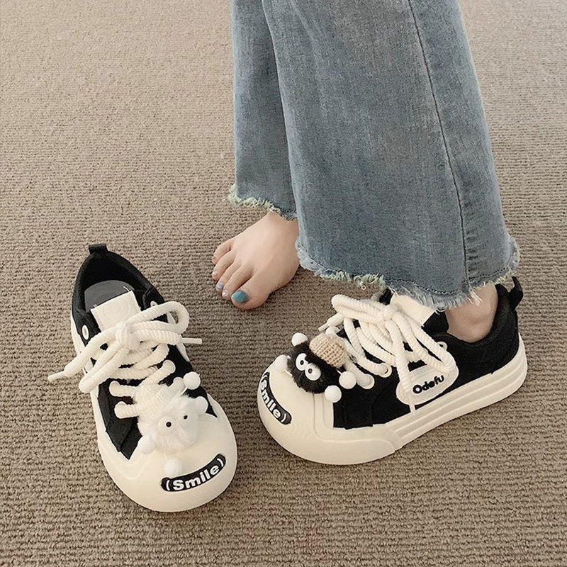多嘴驴Donkey丑萌板鞋女秋冬小众原创魔术贴小白鞋休闲厚底德训鞋