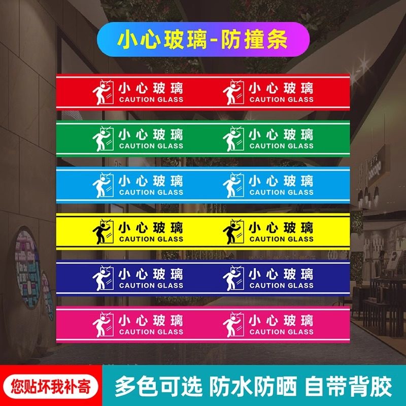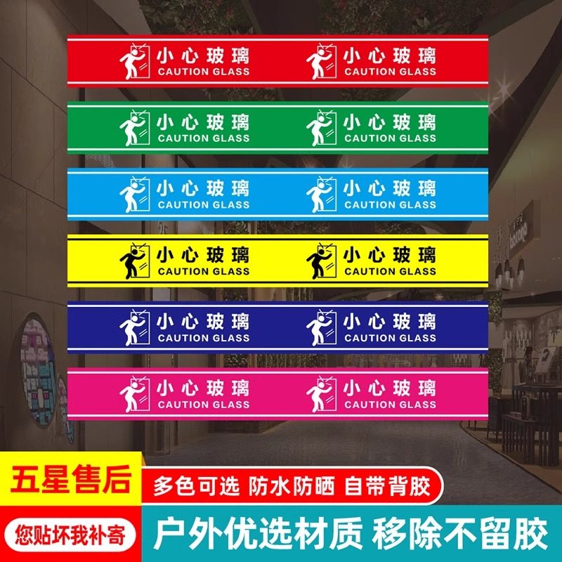 小心玻璃提示贴防撞玻璃门腰线标贴当心玻璃公司酒店贴条自粘装饰