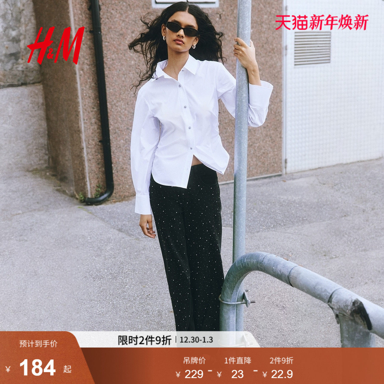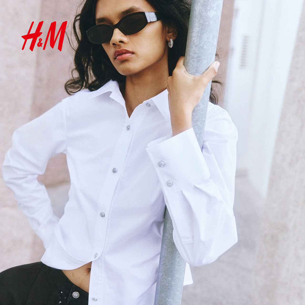 HM女士衬衫春季垂褶棉质衬衫1298684