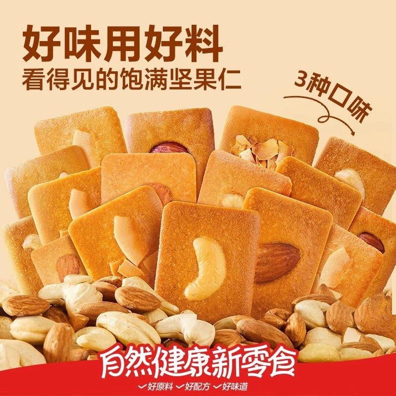 坚果奶芙脆片饼干山巴旦木姆腰果超市薄脆健康无添加早餐零食食品