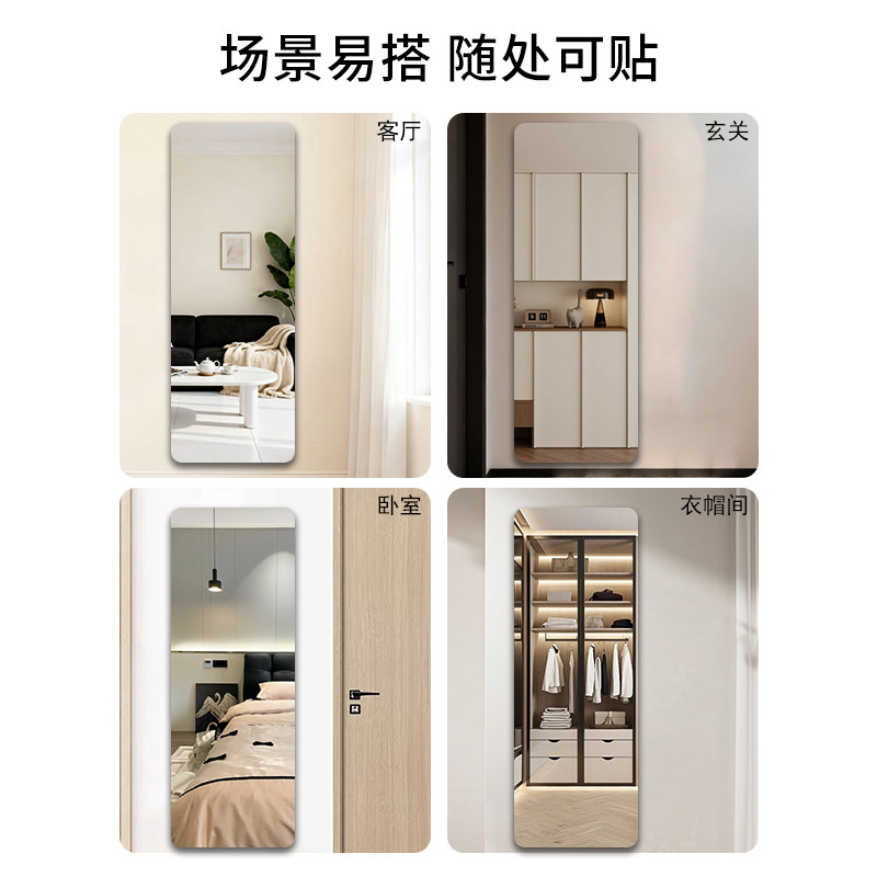 全身镜子贴墙自粘衣柜内装隐形卧室玻璃柜门穿衣镜墙面客厅防爆