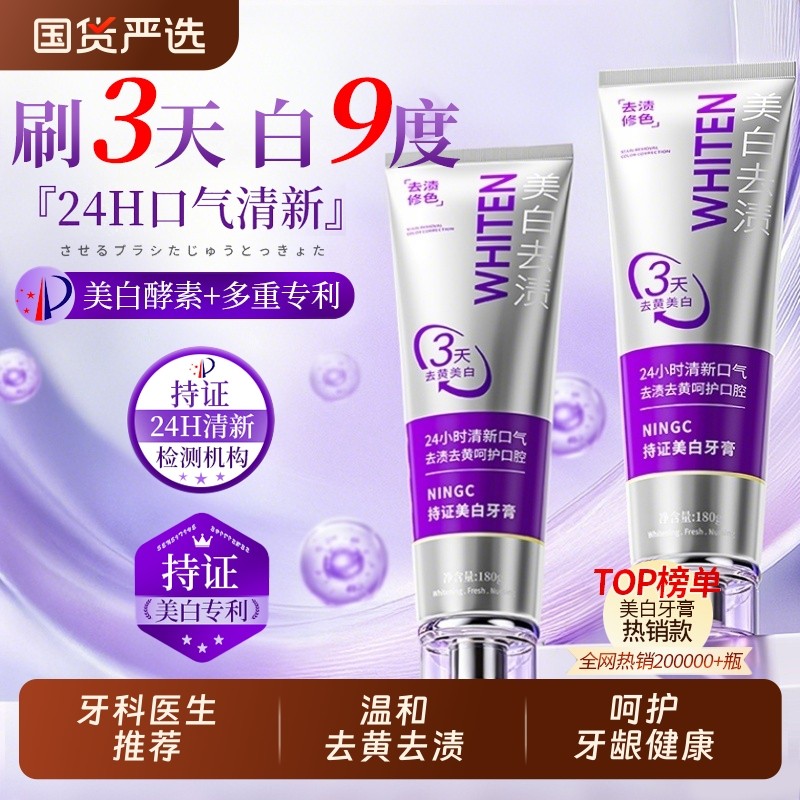 牙膏美白去黄去口臭除异味口气清新成人女男士专用官方牙齿口腔