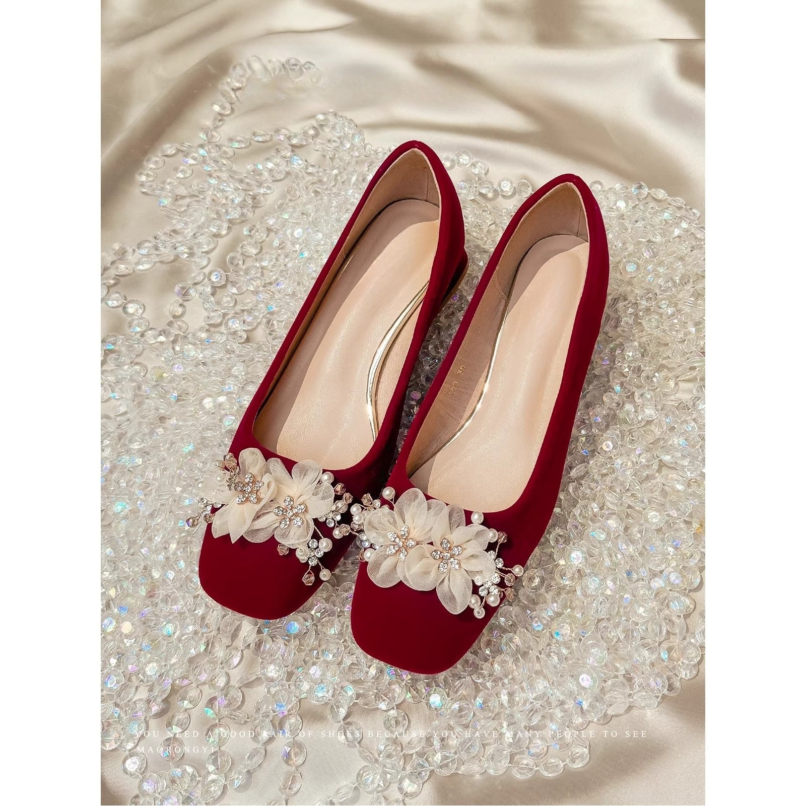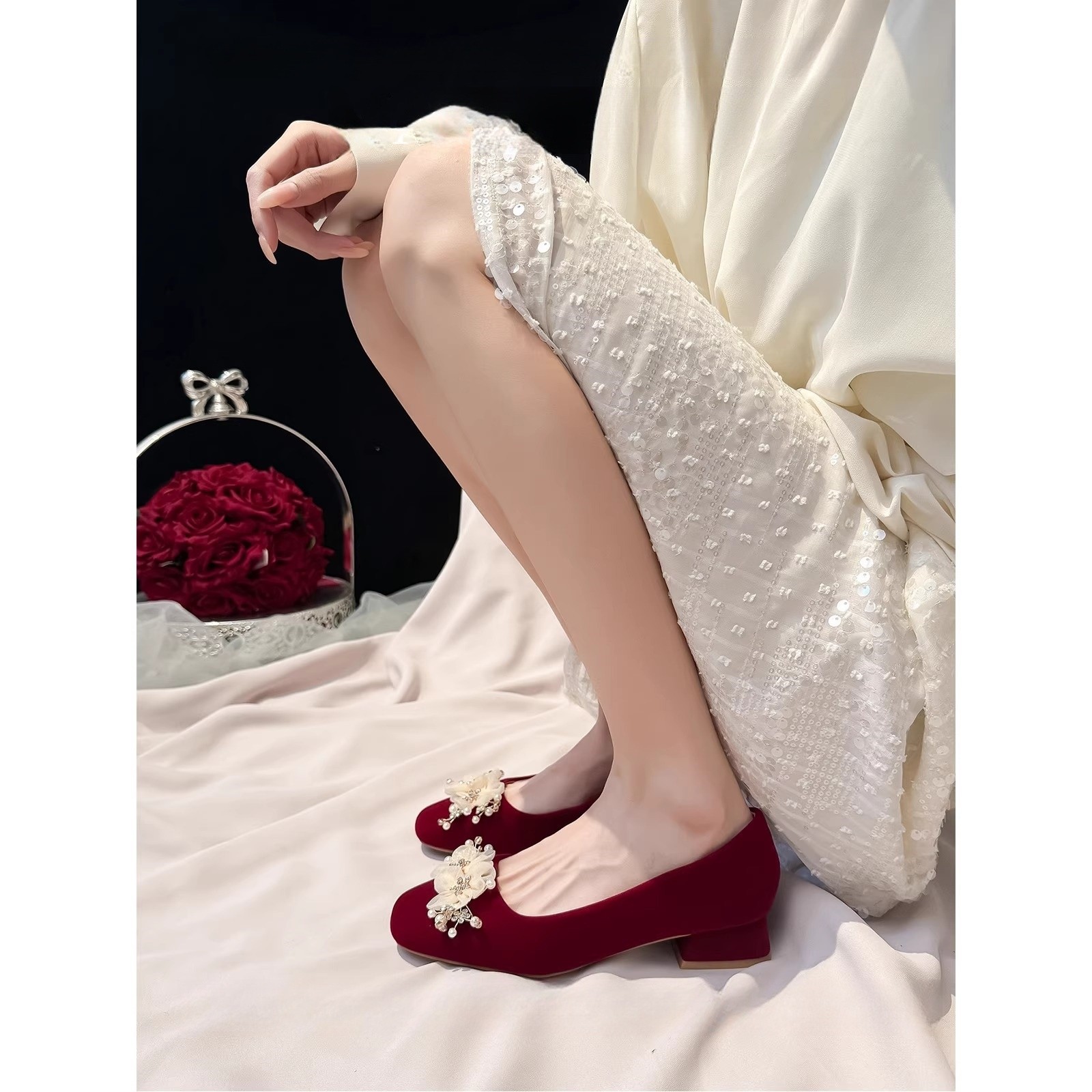 绝美婚鞋女2025新款秀禾服婚纱两穿孕妇新娘鞋红色婚宴敬酒鞋粗跟