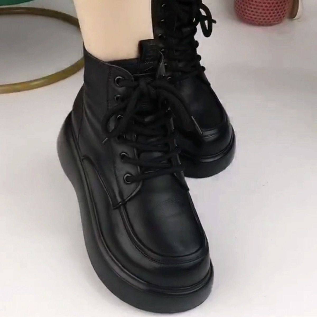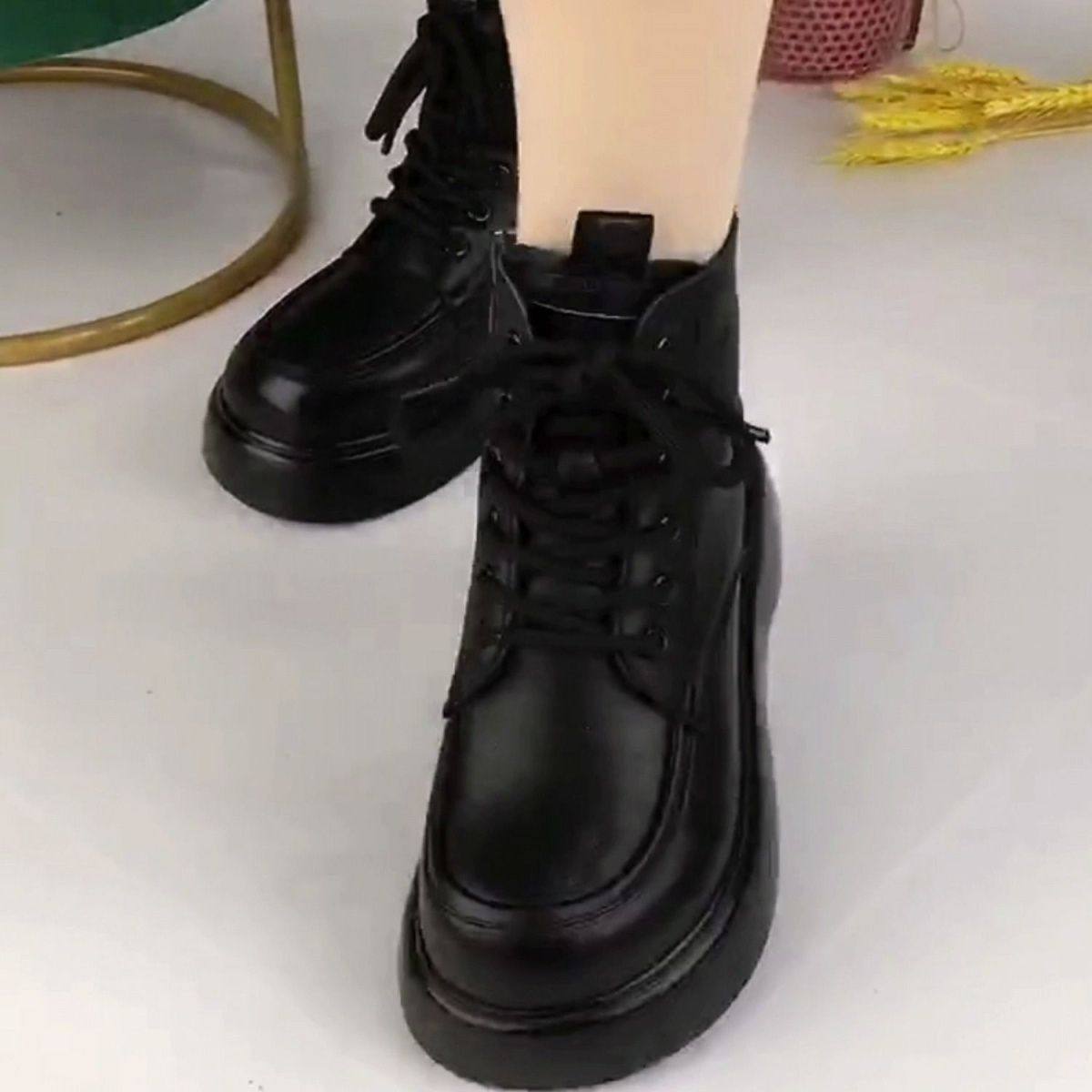 品牌真皮雪地靴女秋冬季2024新款短靴复古厚底增高马丁靴加绒棉鞋