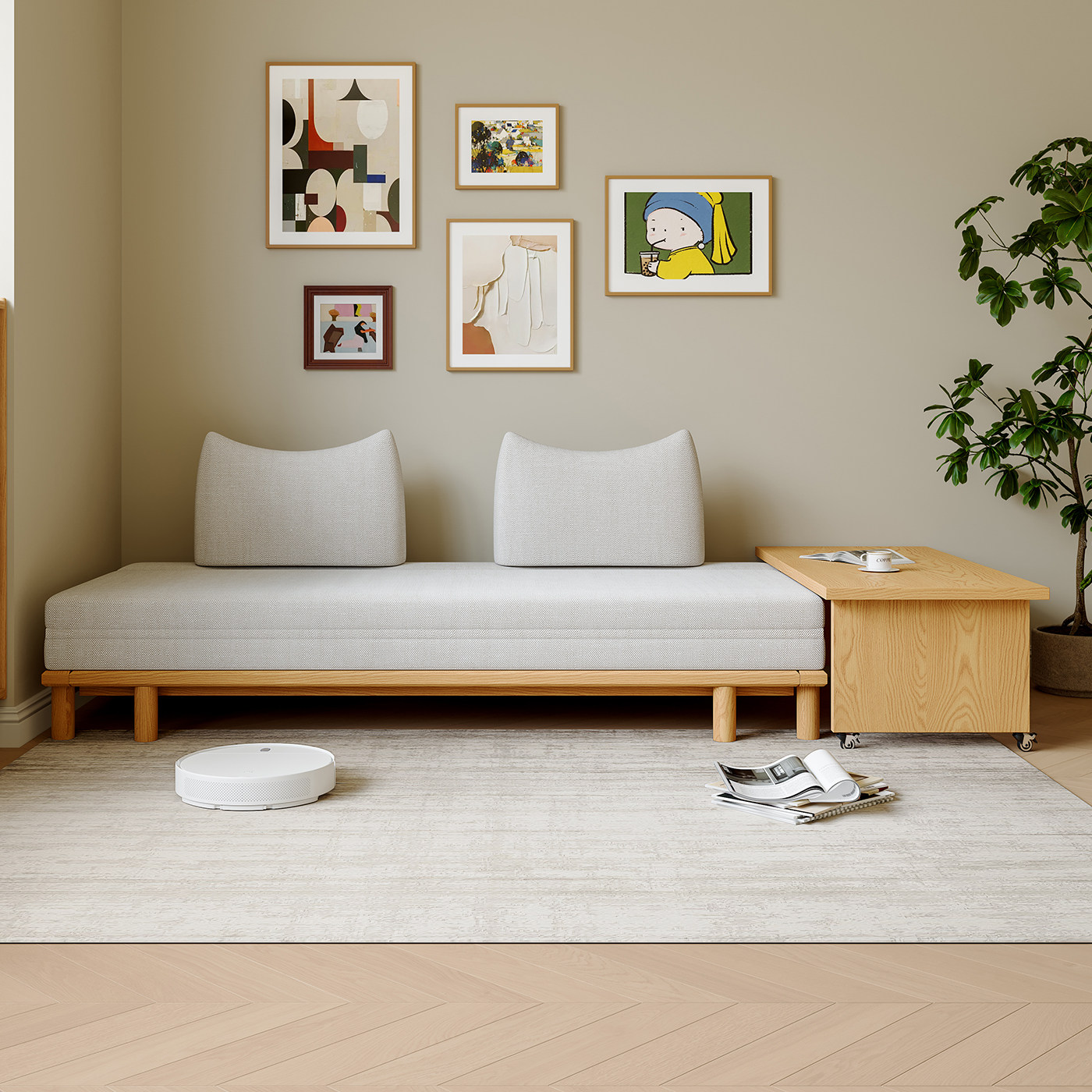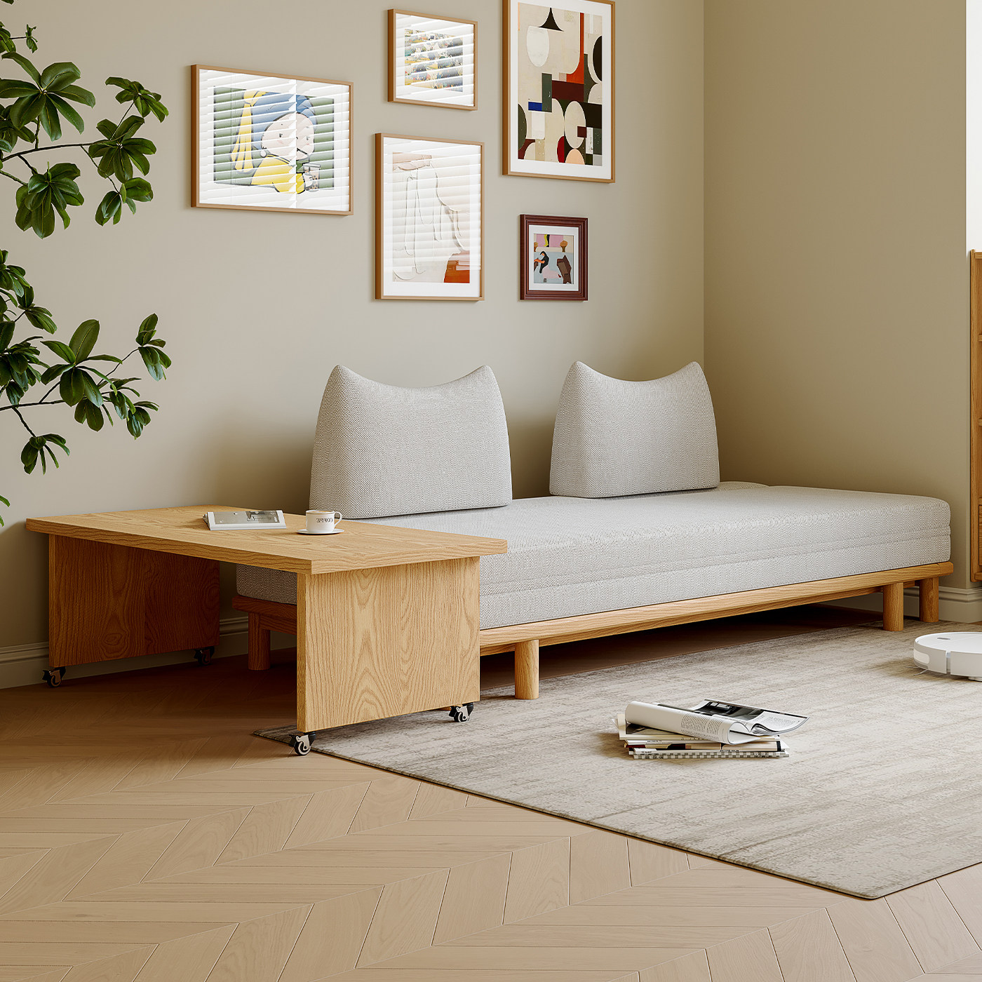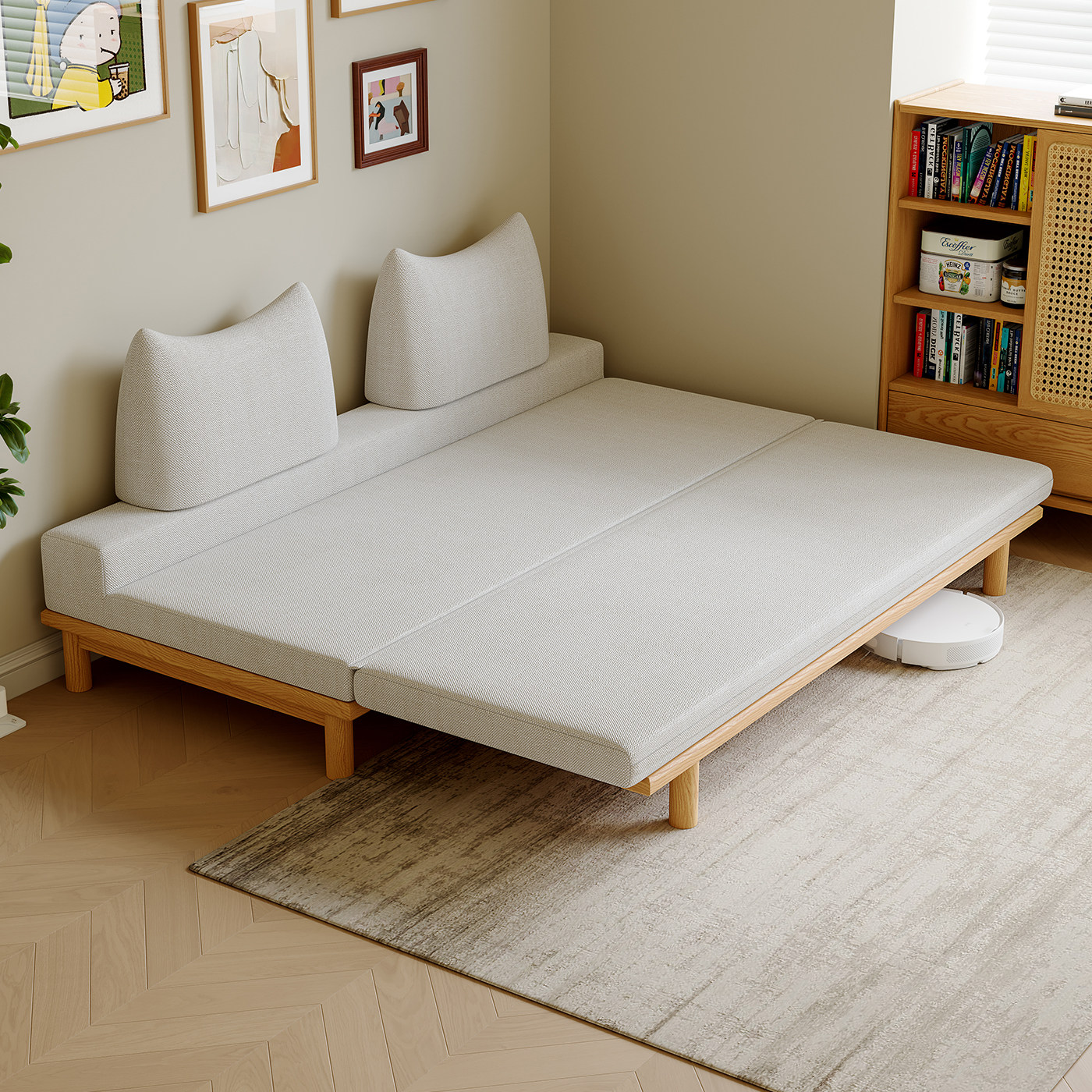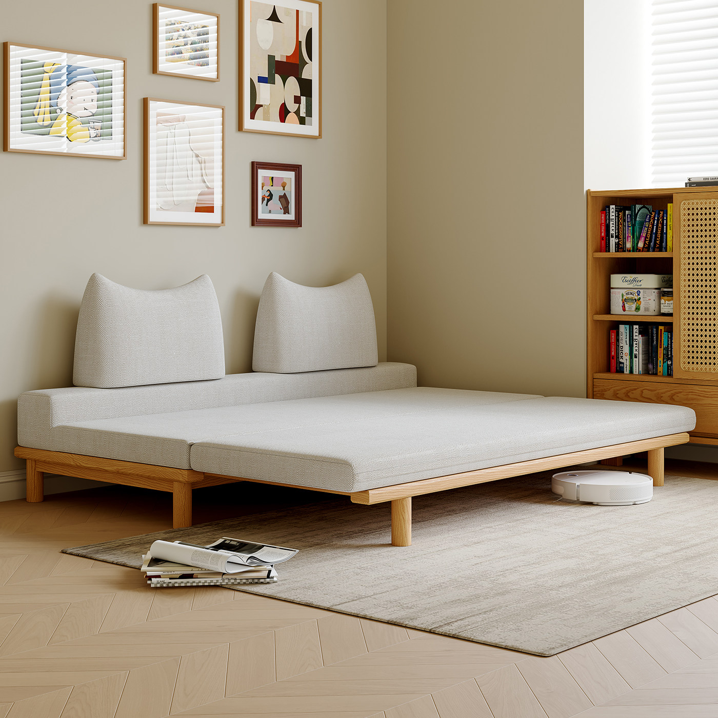 司朴可拆洗实木布艺沙发小户型客厅书房两用伸缩抽拉折叠沙发床