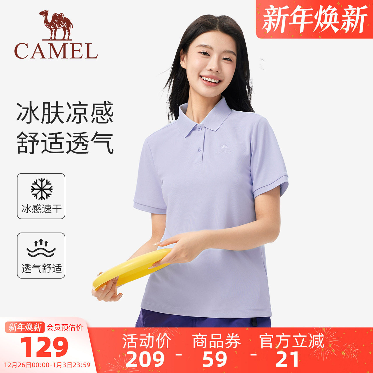 骆驼女装短袖T恤2025夏新款百搭通勤凉感速干透气休闲上衣polo衫