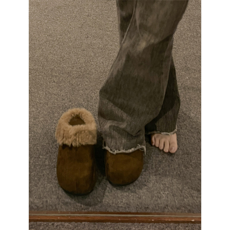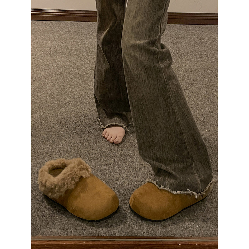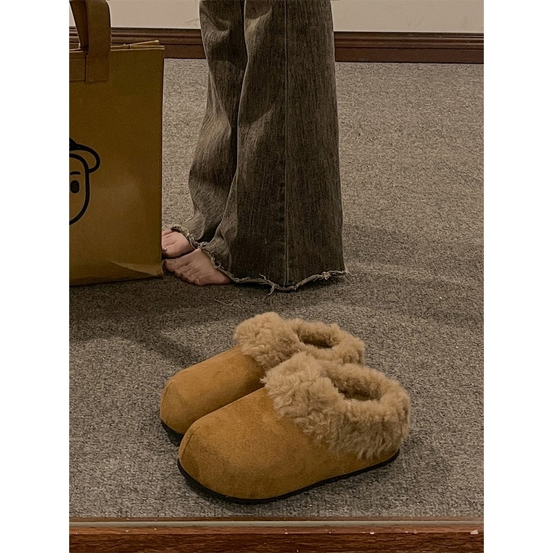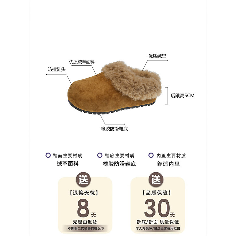 叁叔家~内增高勃肯鞋女加绒秋冬保暖毛毛半拖外穿厚底博肯鞋