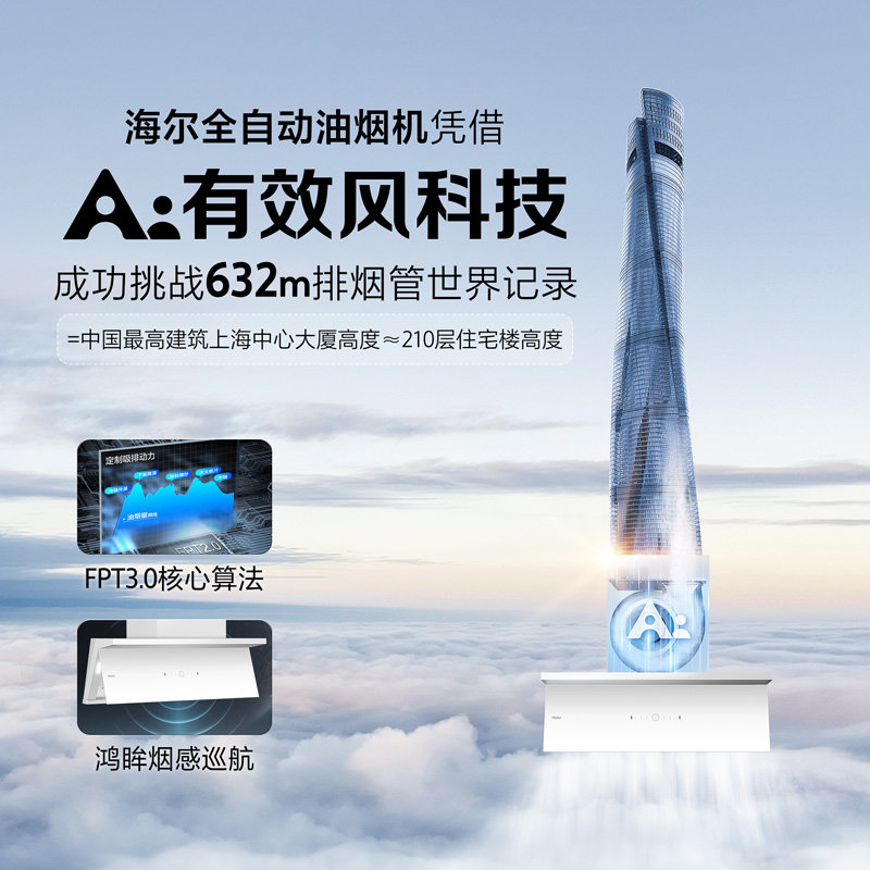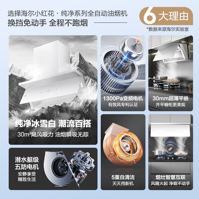 [政府补贴]海尔小红花吸抽油烟机家用厨房大吸力官方全自动C50Max