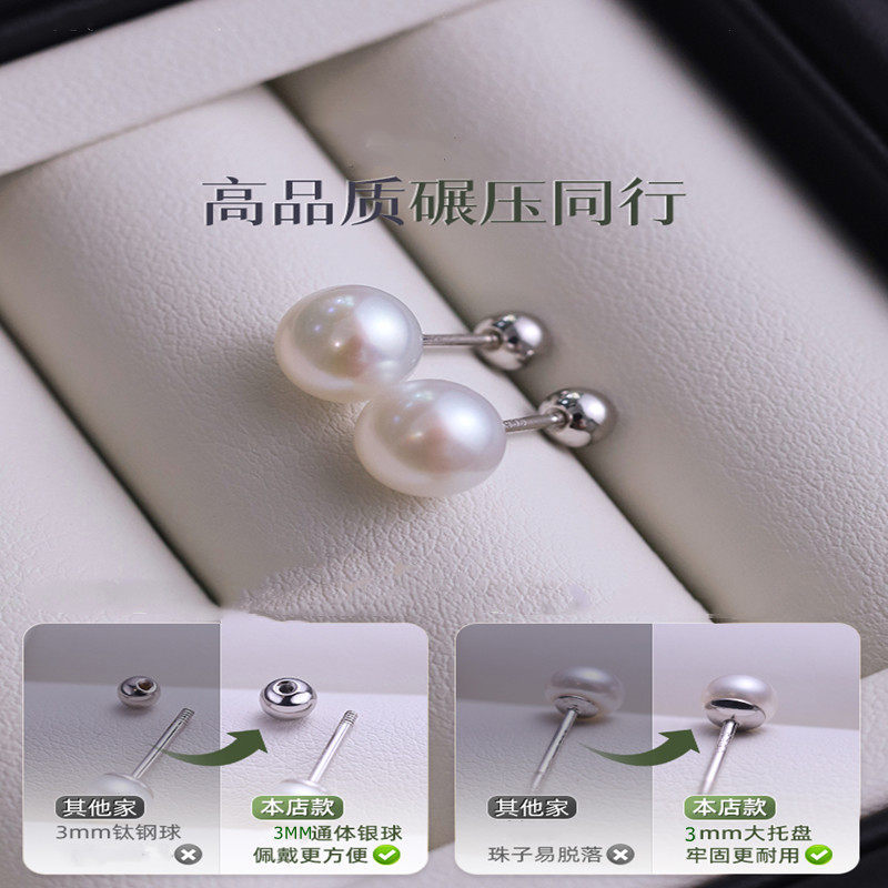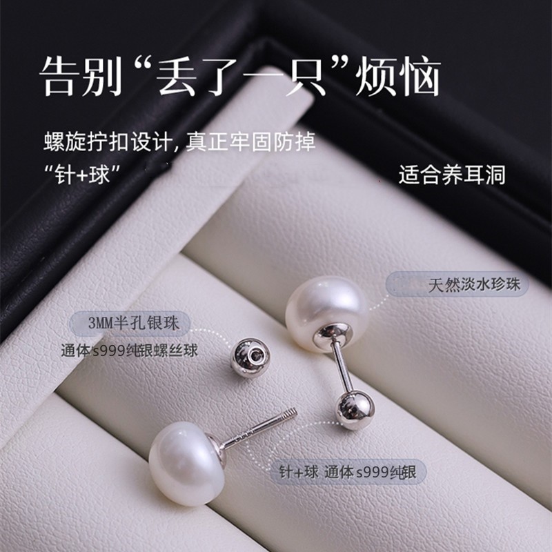 螺丝拧扣天然淡水珍珠耳钉S999足银防掉防丢耳骨钉养耳洞高级感