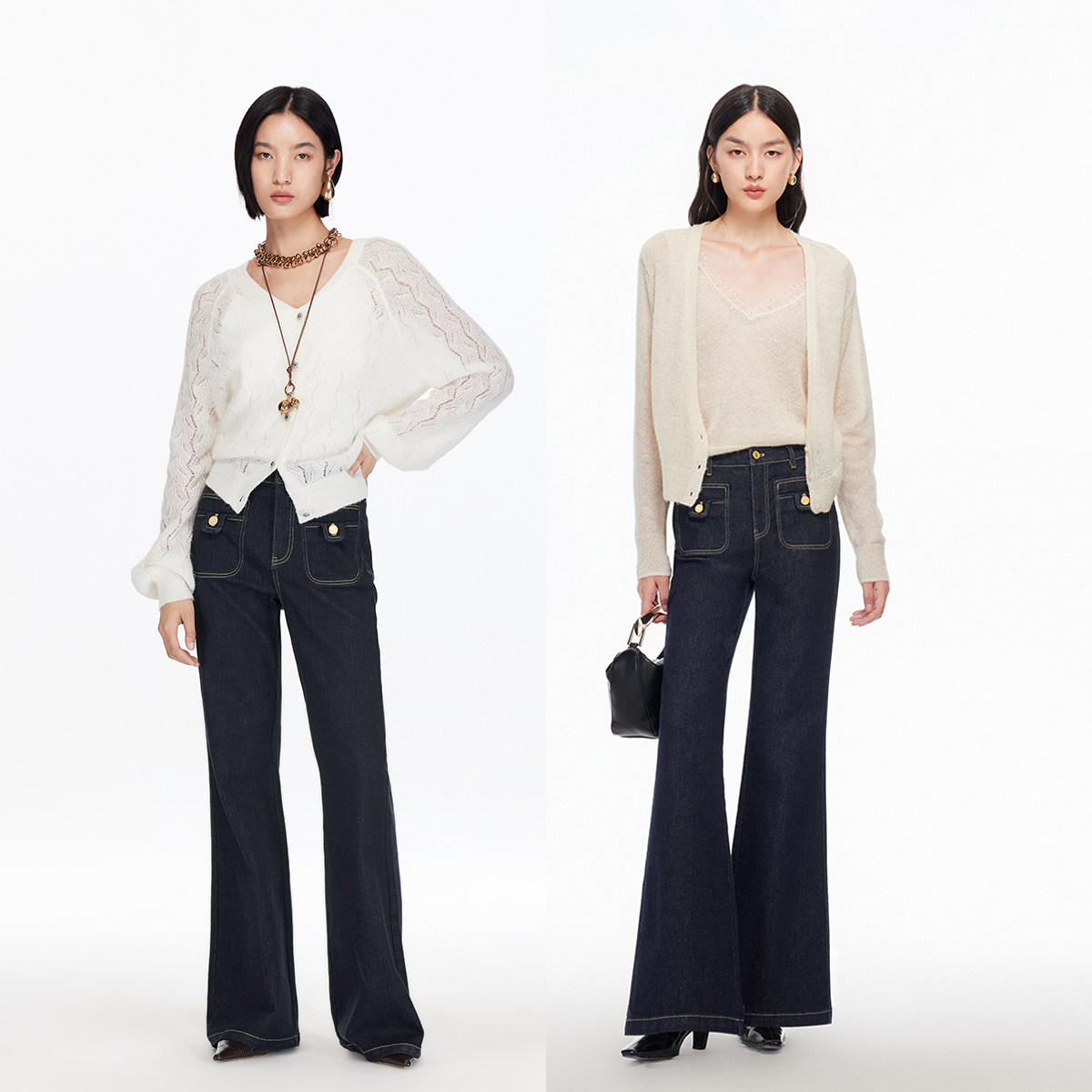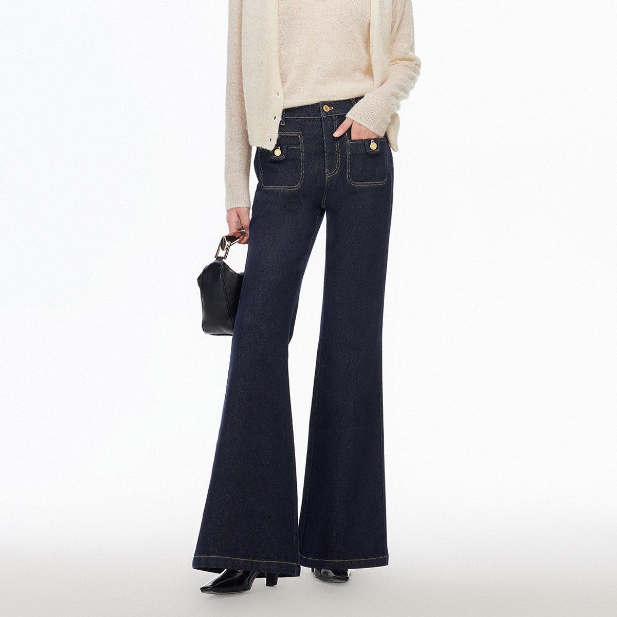 Vero Moda牛仔裤女2025秋冬新款含棉双口袋显高显瘦微喇裤百搭