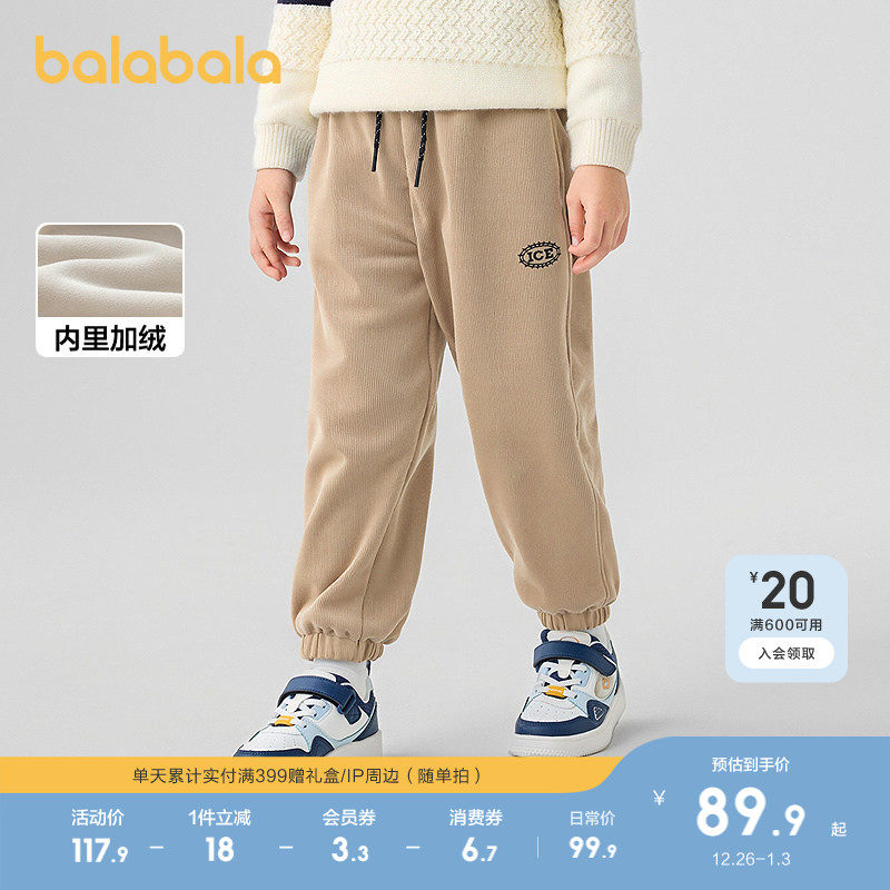 巴拉巴拉童装儿童裤子男童秋冬装加绒长裤潮洋气保暖休闲大童时尚