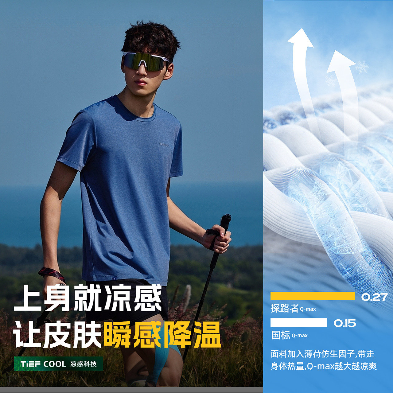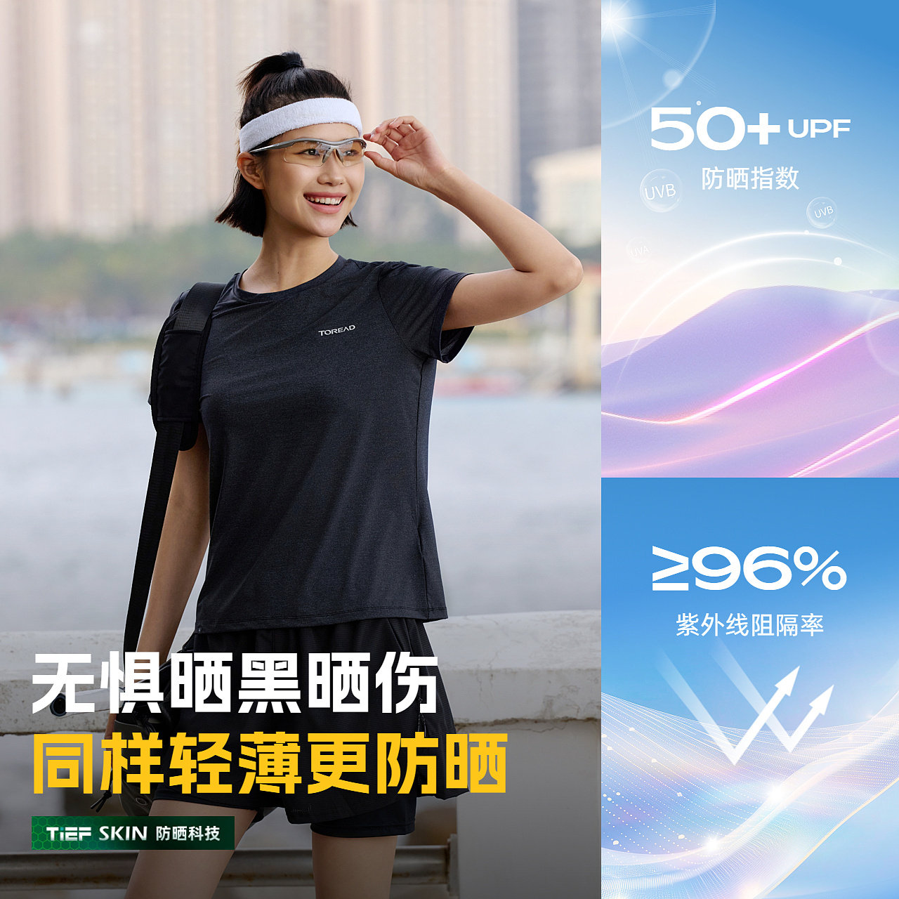 探路者功能短袖T恤女UPF50+防晒户外运动轻薄凉感通勤短袖T恤男