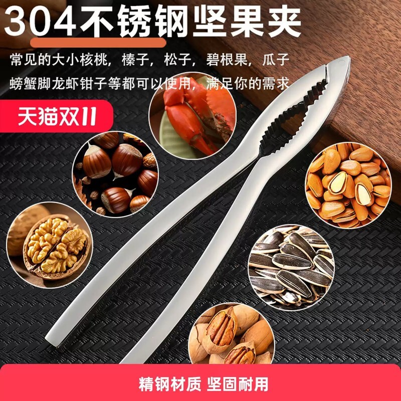 304钢防断坚果钳山核桃夹子剥瓜子榛子杏核松子夹蟹虾钳开壳神器