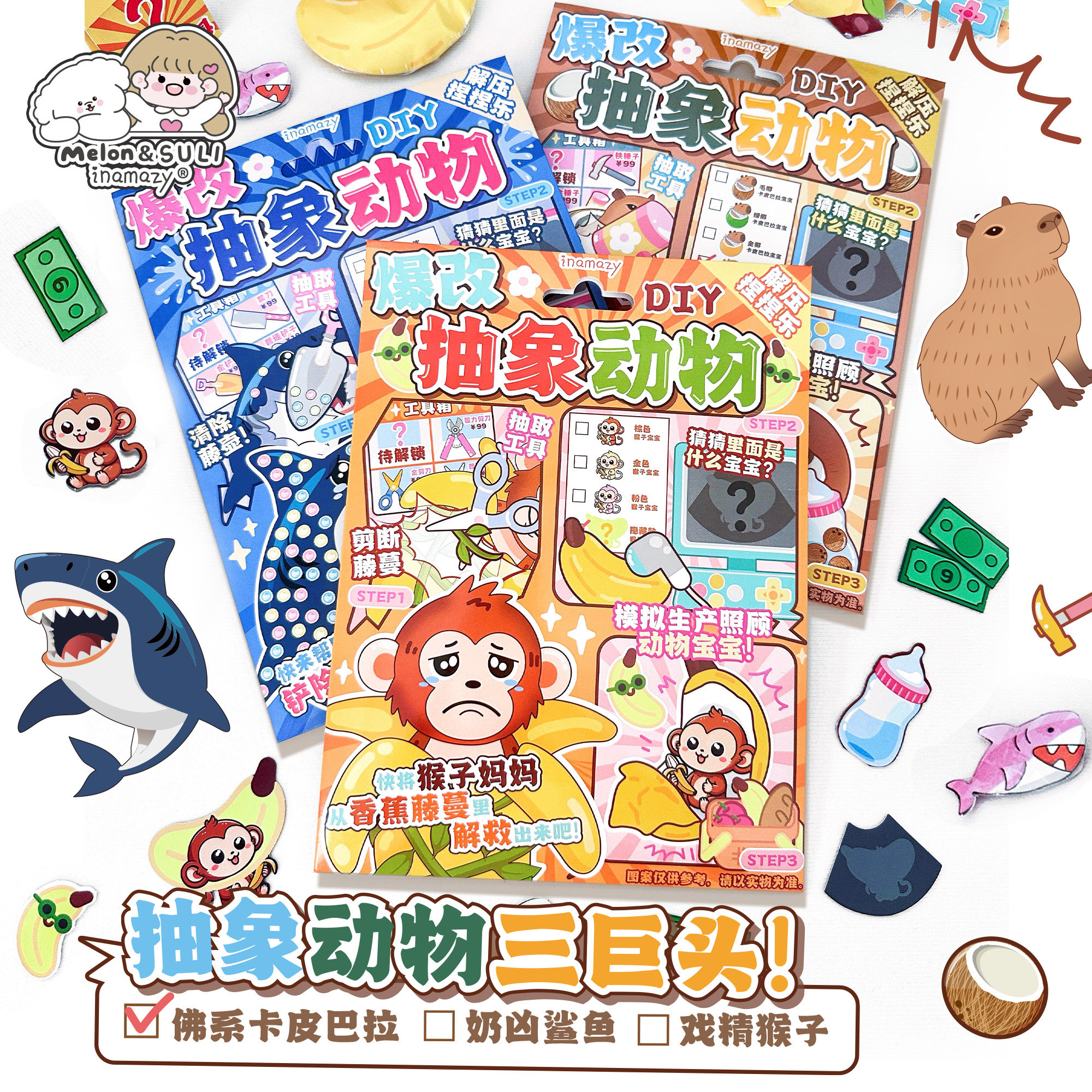 inamazy爆改动物贴纸本手工diy材料包儿童益智玩具解压换装玩具