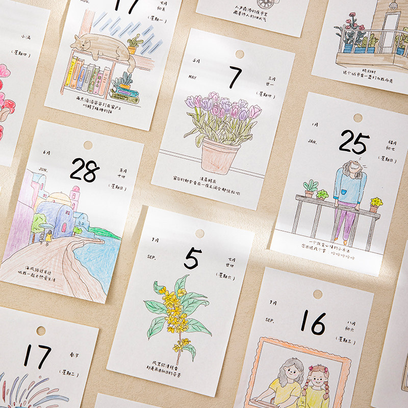 青禾纪原创每日一撕画画日历2026年解压治愈桌面摆件彩铅填色台历
