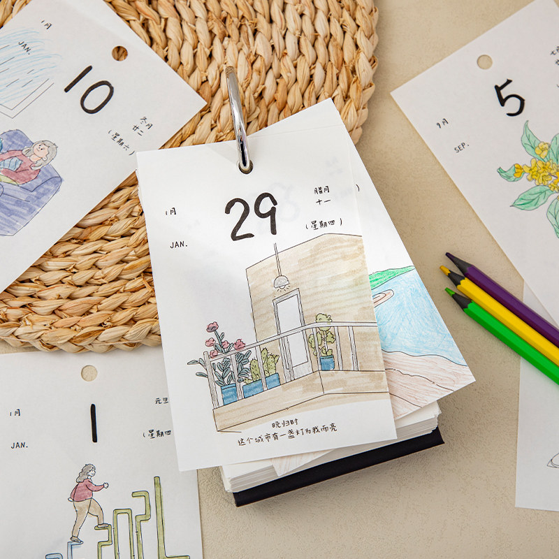 小确幸填色日历2026年新款创意diy涂色台历暖心治愈解压插画一日一页办公室桌面摆件小众高颜值新年礼物定制