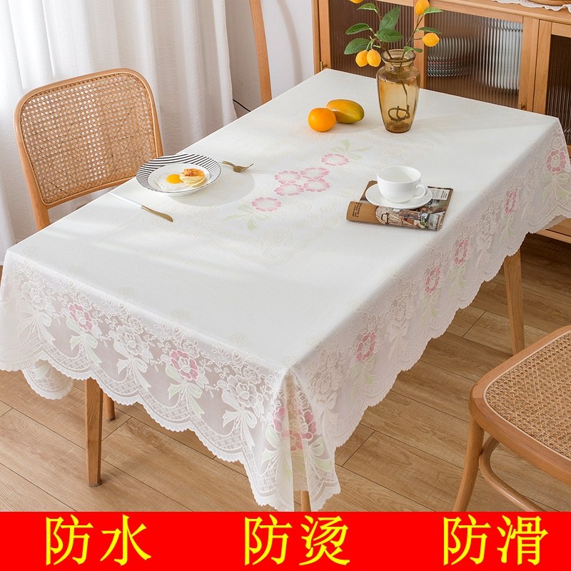 餐桌桌布茶几防水防油免洗防烫轻奢高级感长方形pvc蕾丝台布桌垫