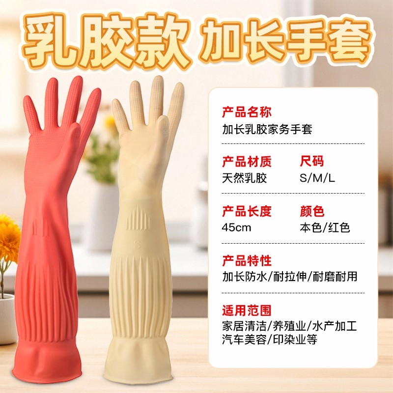 橡胶洗碗手套加厚加长耐用胶皮硅胶工作劳保耐磨厨房防水女士干活