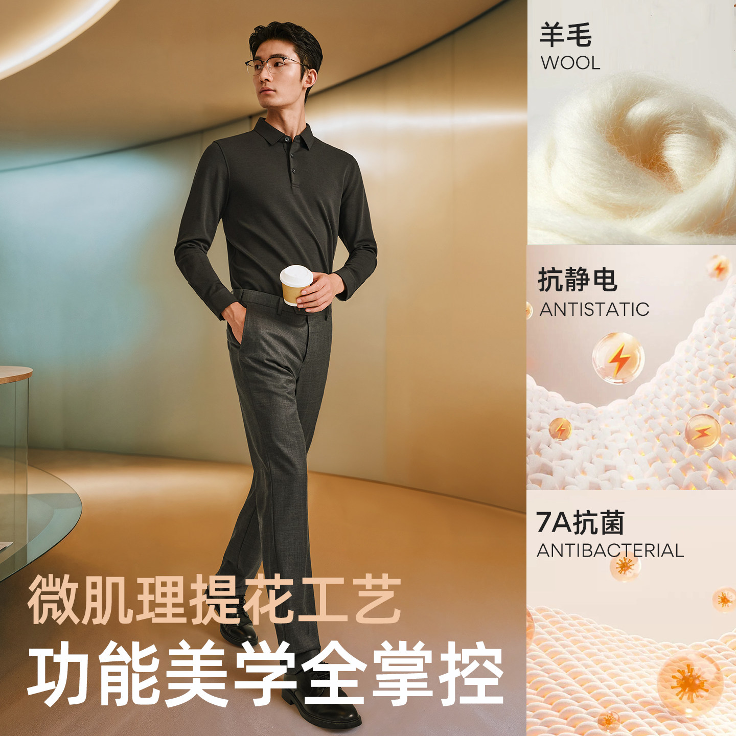 【抗菌+抗静电】雅戈尔秋冬季男士可机洗羊毛长袖翻领保暖POLO衫
