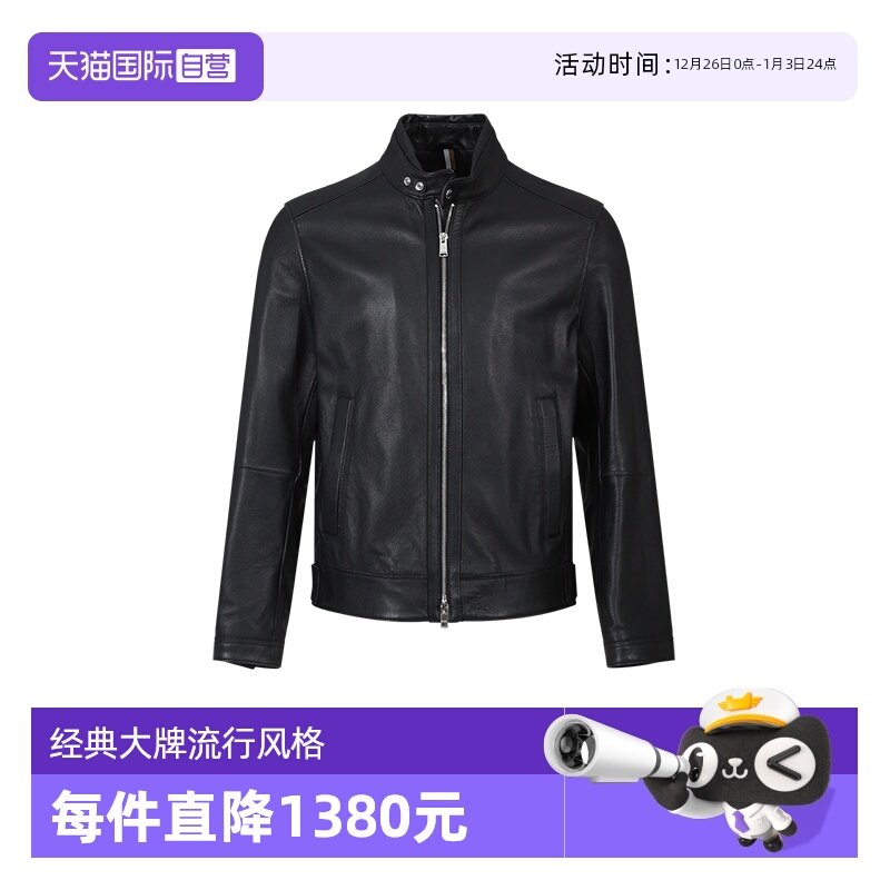 【自营】Hugo Boss男士black系列粒面立领皮衣皮夹克上衣外套真皮