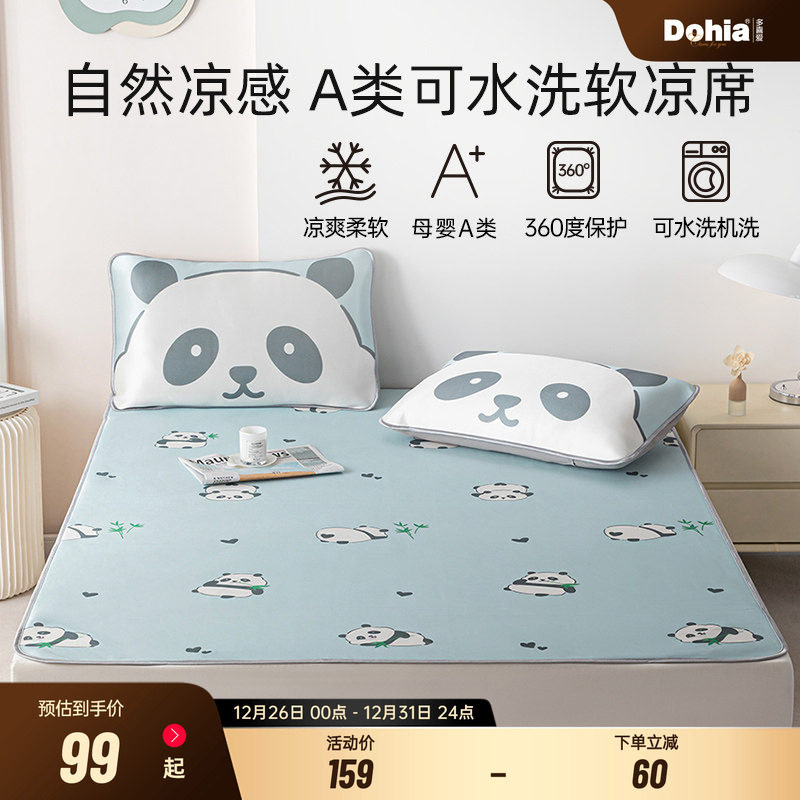 多喜爱软凉席母婴A类卡通凉感席子三件套可机洗折叠空调床笠软席