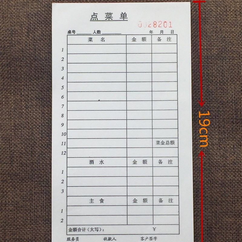 包邮一联菜单单联点菜单餐厅饭w店用餐饮单40K不带复写菜单40页/