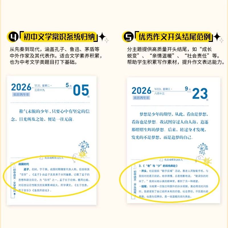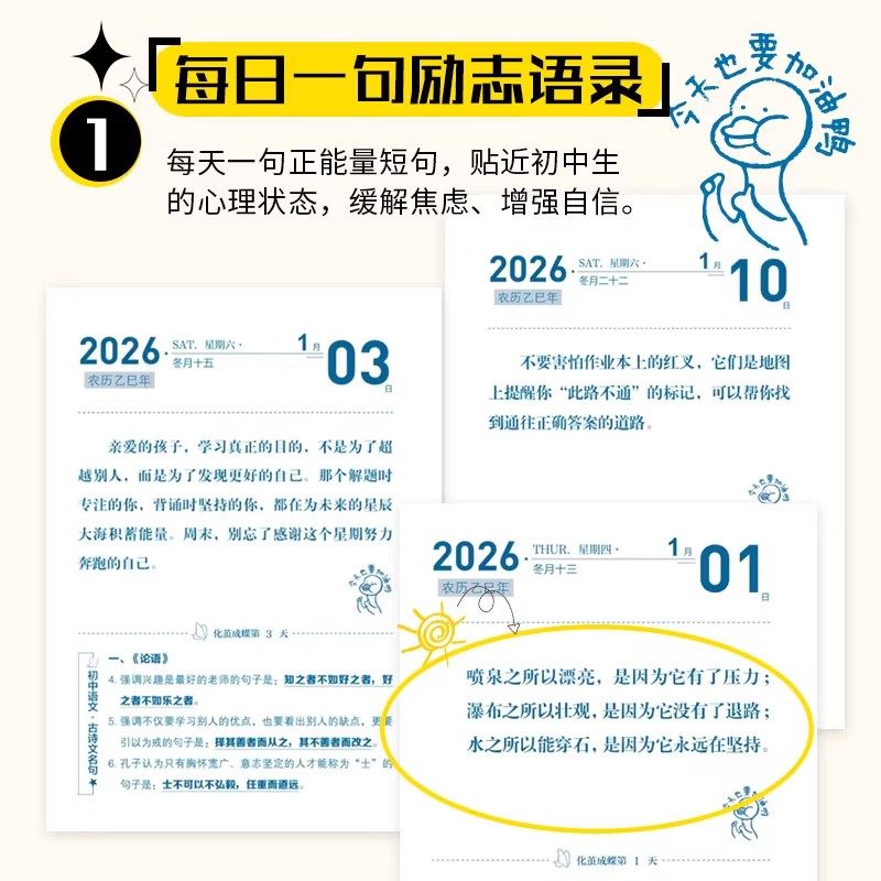 【官方正版】化茧成蝶2026年初中生励志日历+鱼跃龙门高中生励志金句日历初中高中语文英语考点梳理中考高考倒计时新款桌面台历本