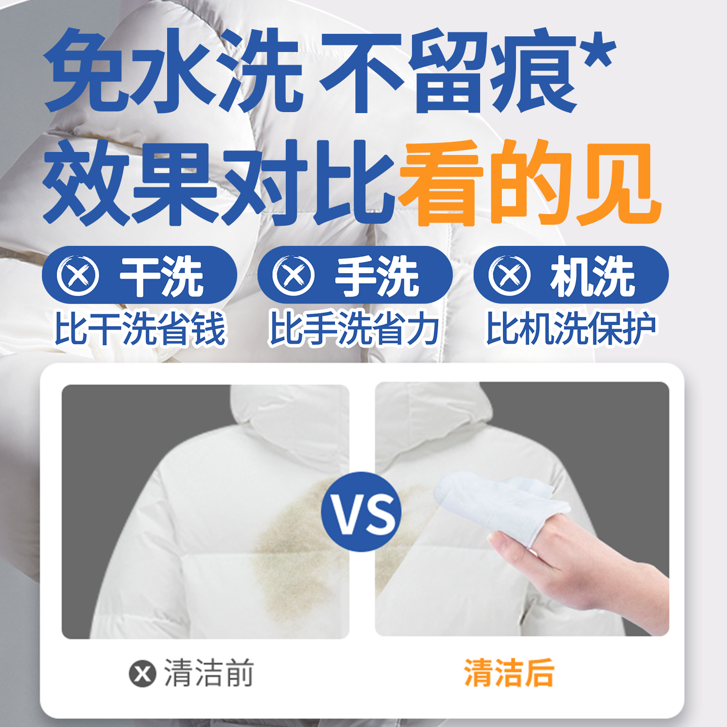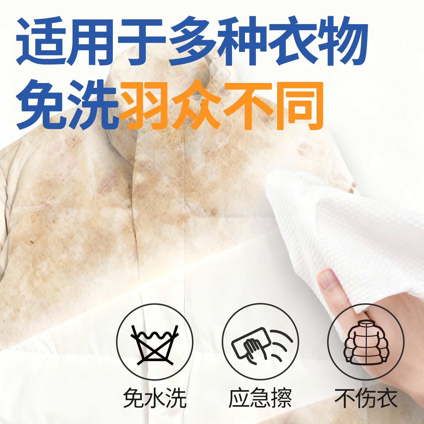 贝因美湿巾纯水无添加去污免水洗不留痕10抽羽绒服清洁便携湿纸巾