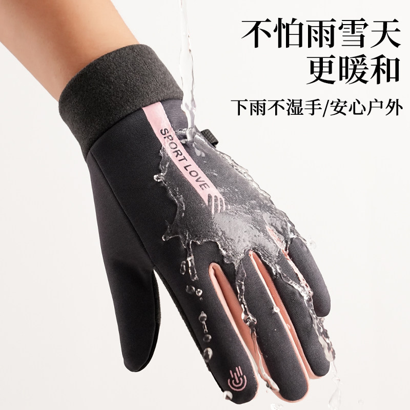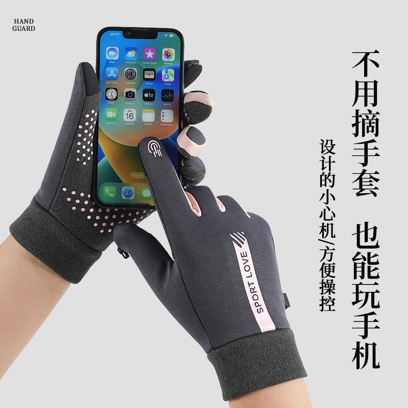 保暖手套女秋冬触屏加厚户外骑行开车德绒防风运动手套防冻男女款