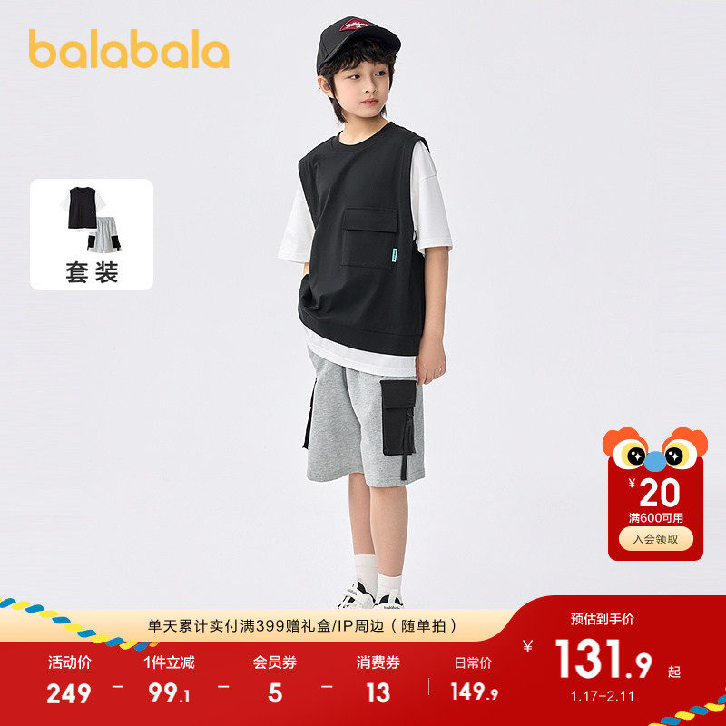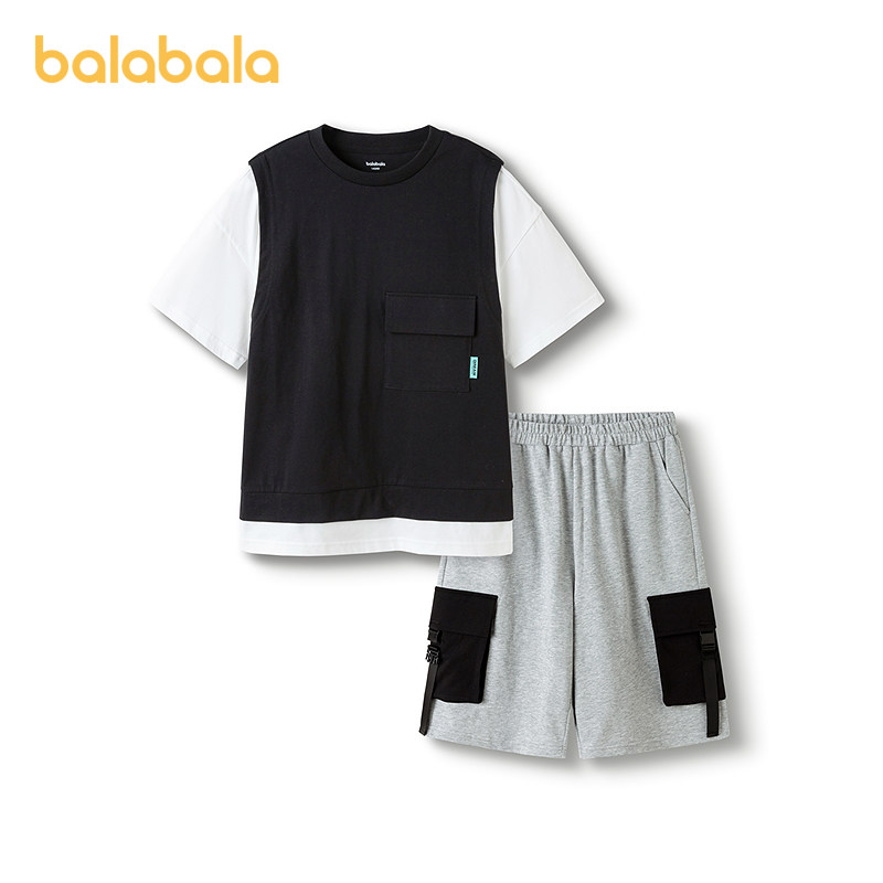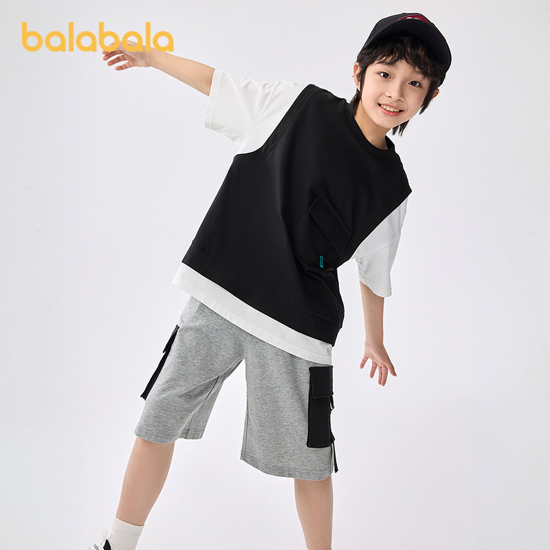 巴拉巴拉男童短袖套装2025新款童装夏季儿童两件套假两件休闲舒适
