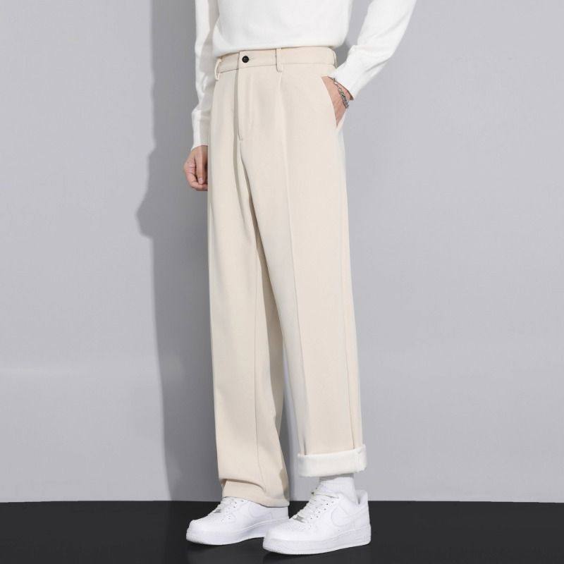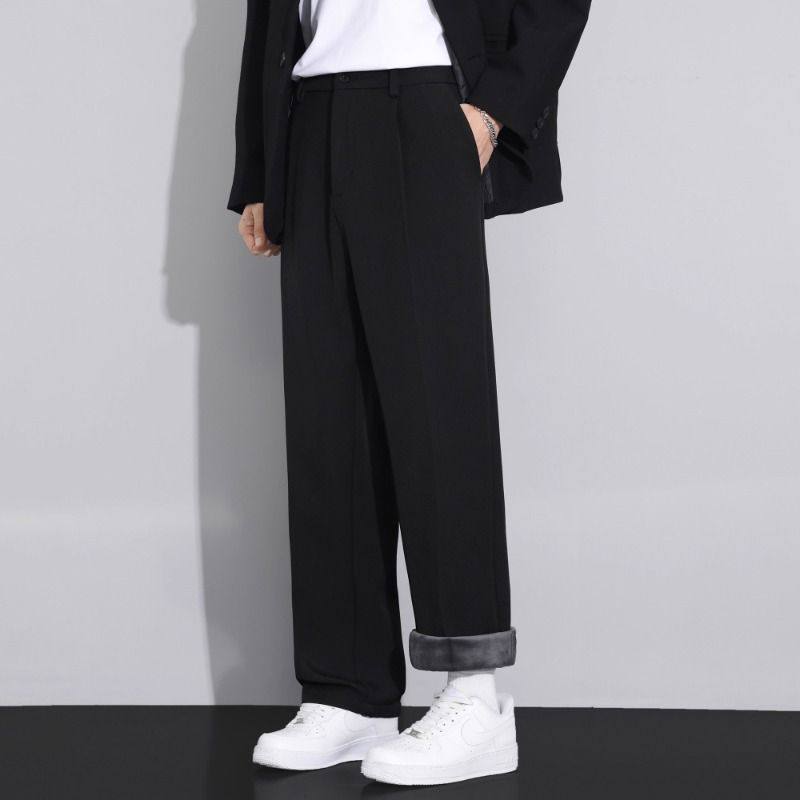 加绒西裤男士秋冬季加厚保暖直筒西装裤宽松阔腿秋冬款休闲长裤子