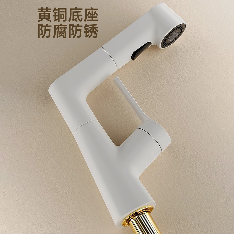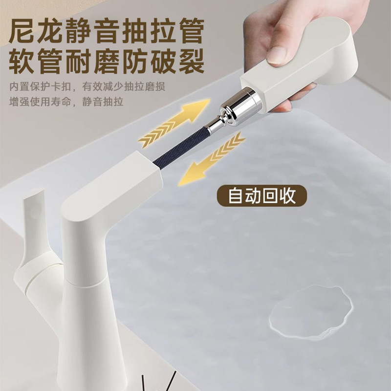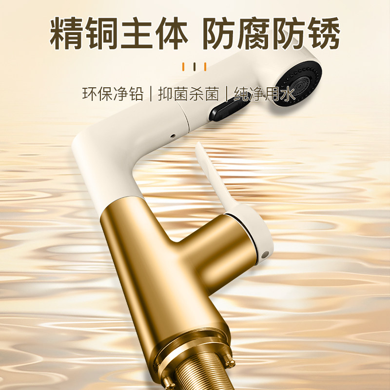洗脸盆抽拉式水龙头升降卫生间面盆全铜浴室柜洗漱台盆洗手盆冷热