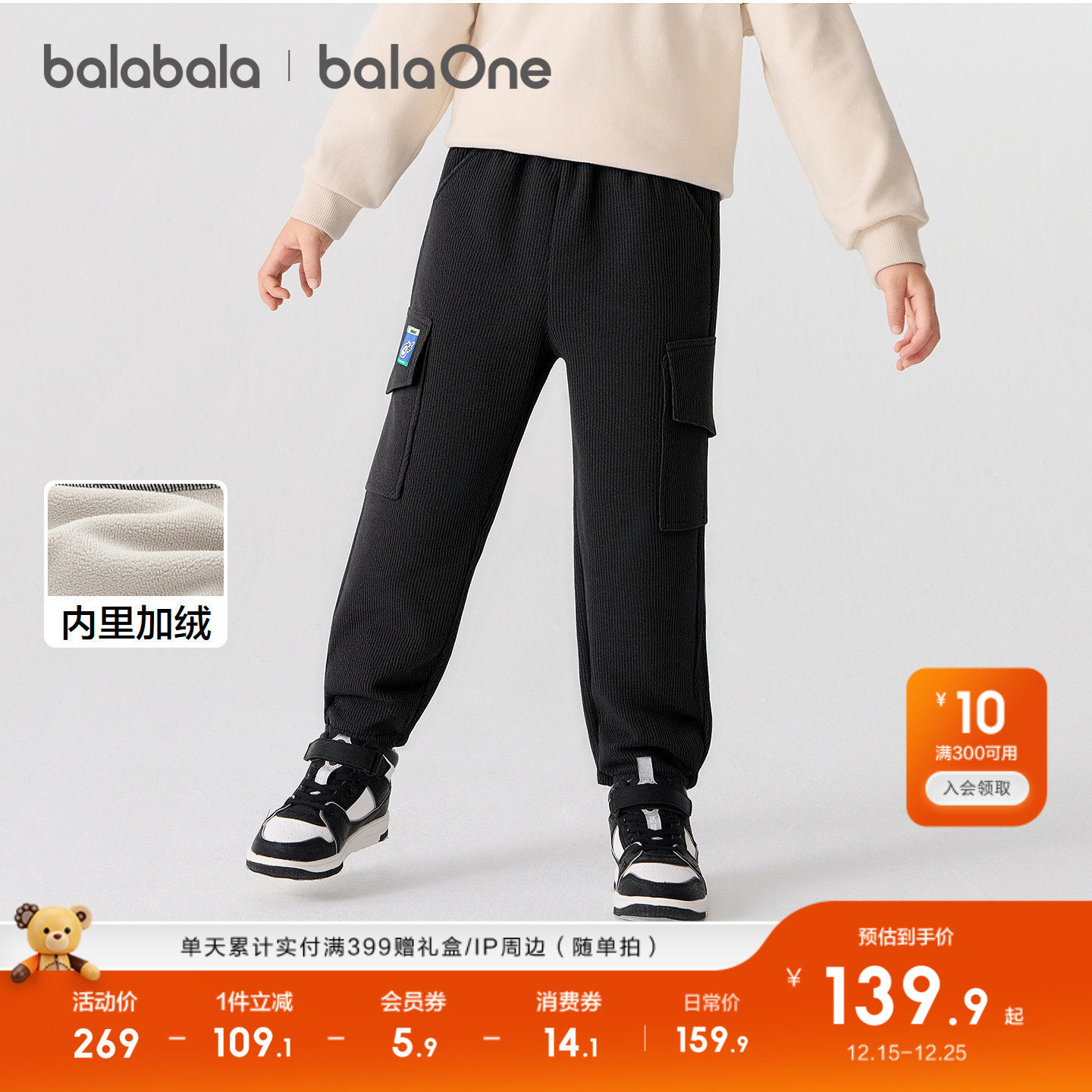 【balaOne】巴拉巴拉童装儿童裤子男童加绒长裤2025冬装新款工装