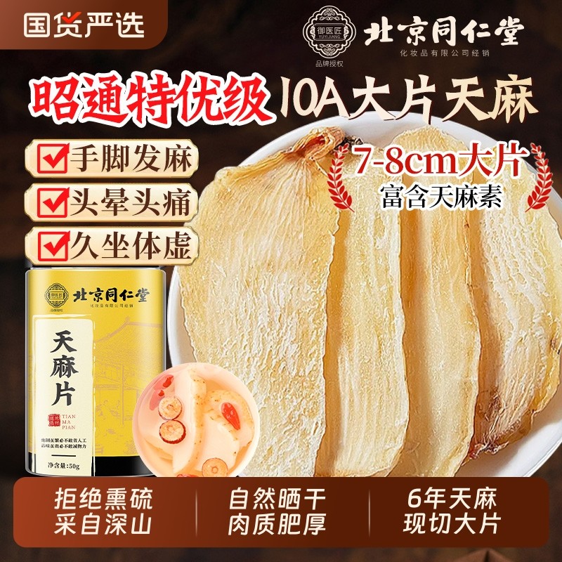 北京同仁堂天麻片新鲜干货天麻粉中药材正品非野生特级官方旗舰店