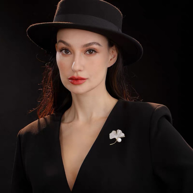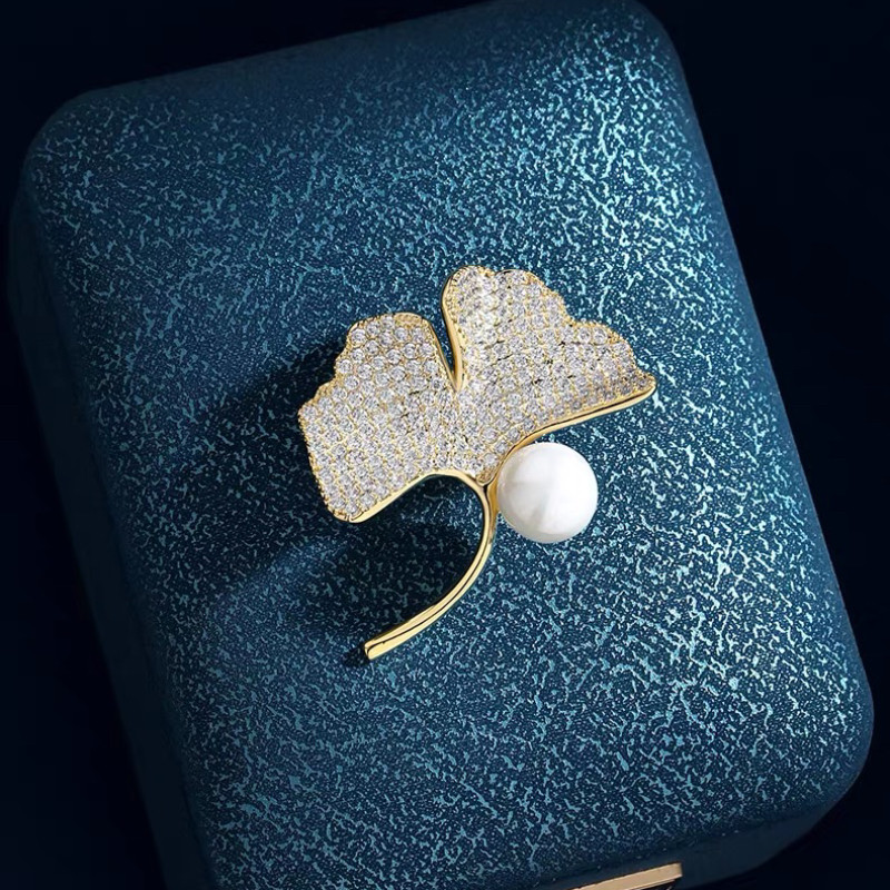 淡水珍珠胸针鎏光银杏高档精致百搭胸花轻奢气质女人七夕节礼物