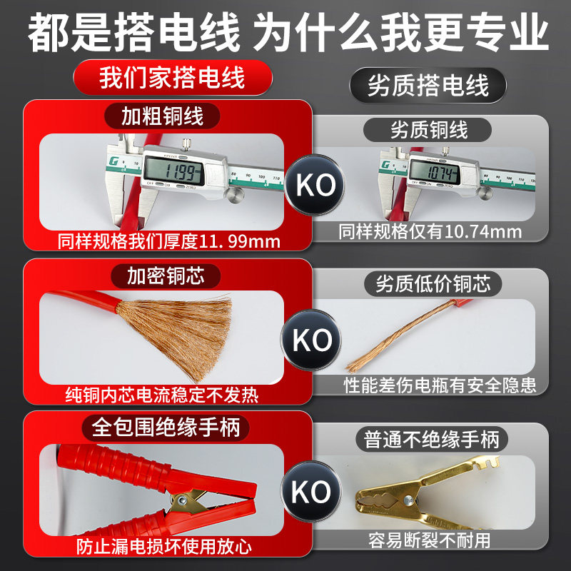 汽车电瓶线搭火线纯铜加粗搭线夹子应急打火连接线搭电线启动电池