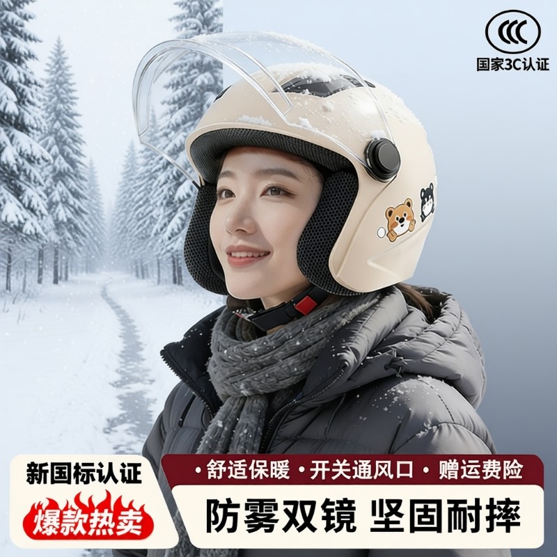 3C认证新国标电动车冬季头盔男女款通用保暖防风寒冬天半盔安全帽