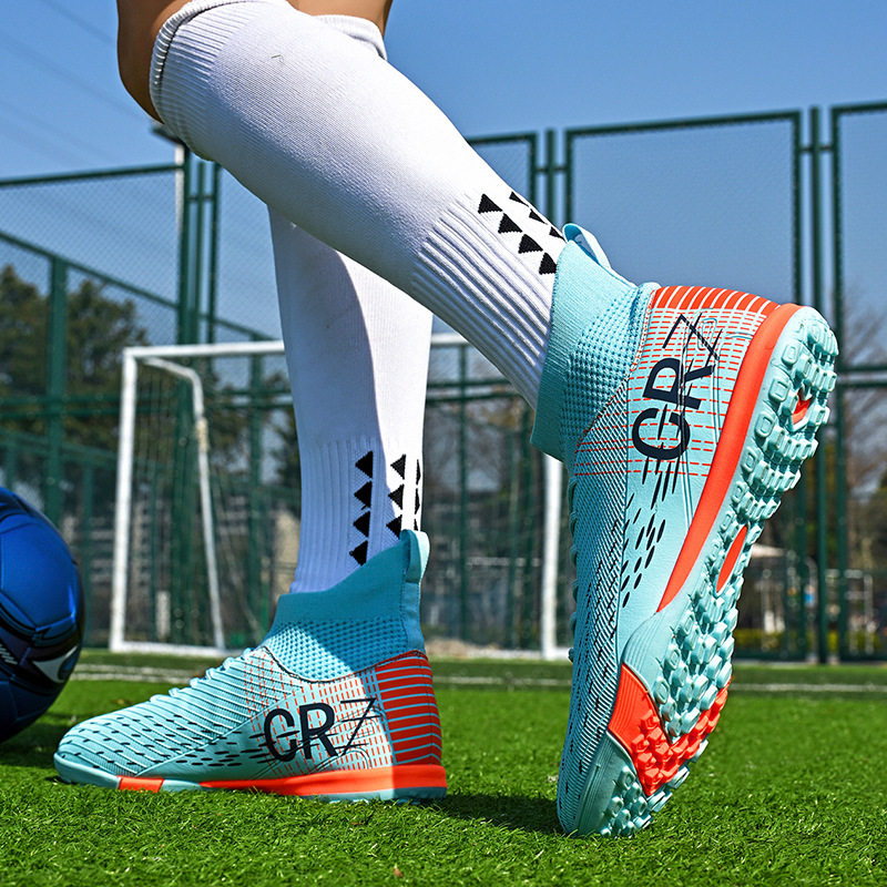 2026新款外贸高帮足球鞋碎钉人造坪AG长钉男女学生训练鞋