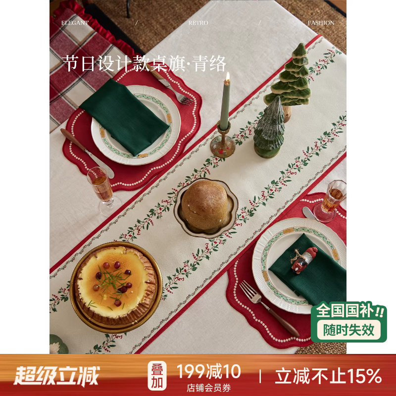 【国补再减15%】蜡笔派青络桌旗新年红色节日轻奢茶几乔迁床旗