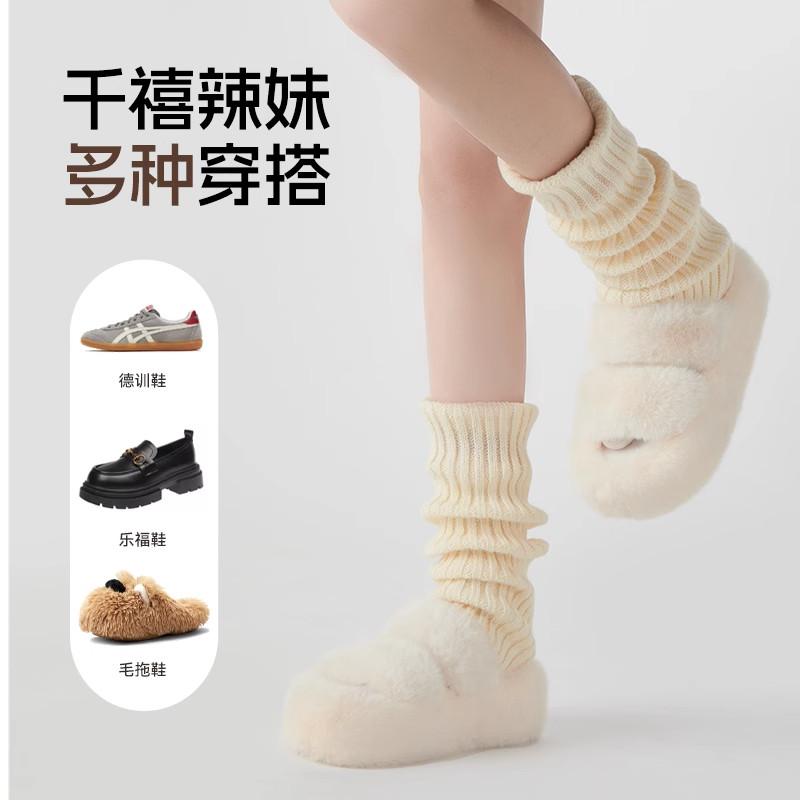 雪地靴袜套女秋冬白色堆堆袜保暖踩脚亚文化针织腿套辣妹灰色腿型