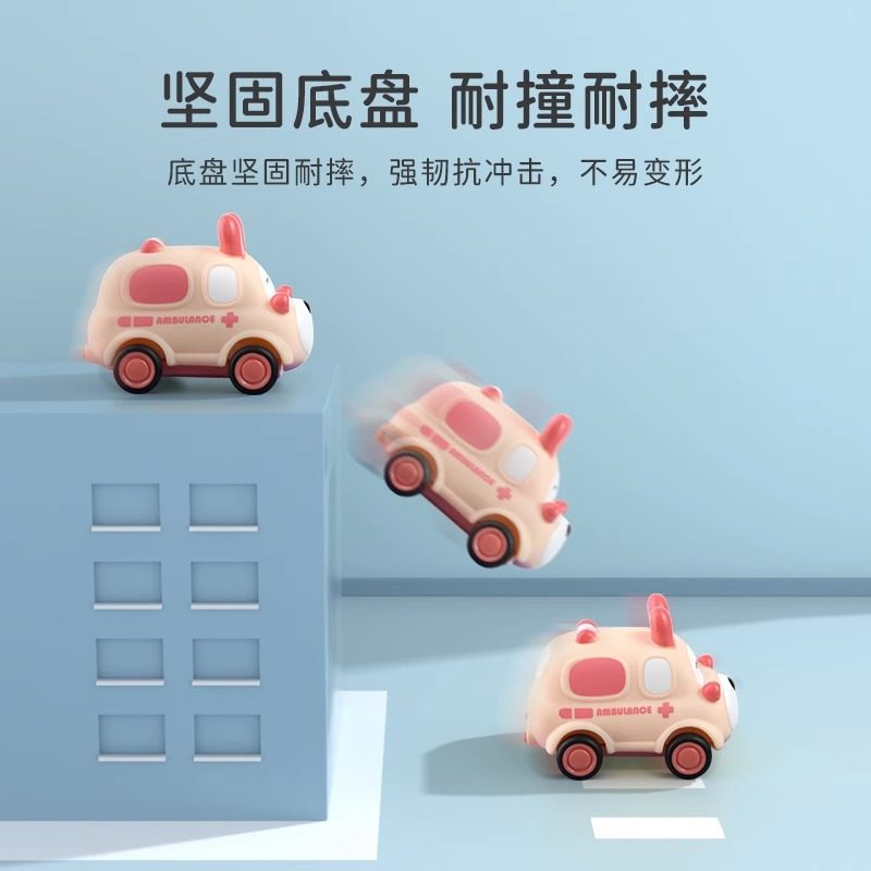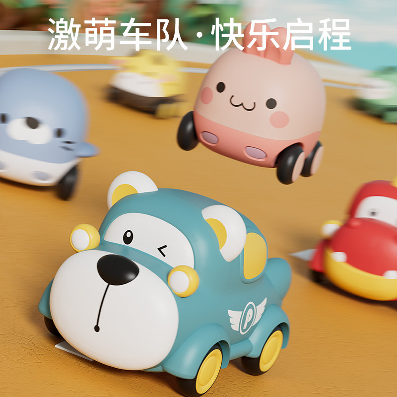 儿童惯性回力车男孩小汽车1—2岁宝宝软胶婴儿玩具卡通可咬耐摔车
