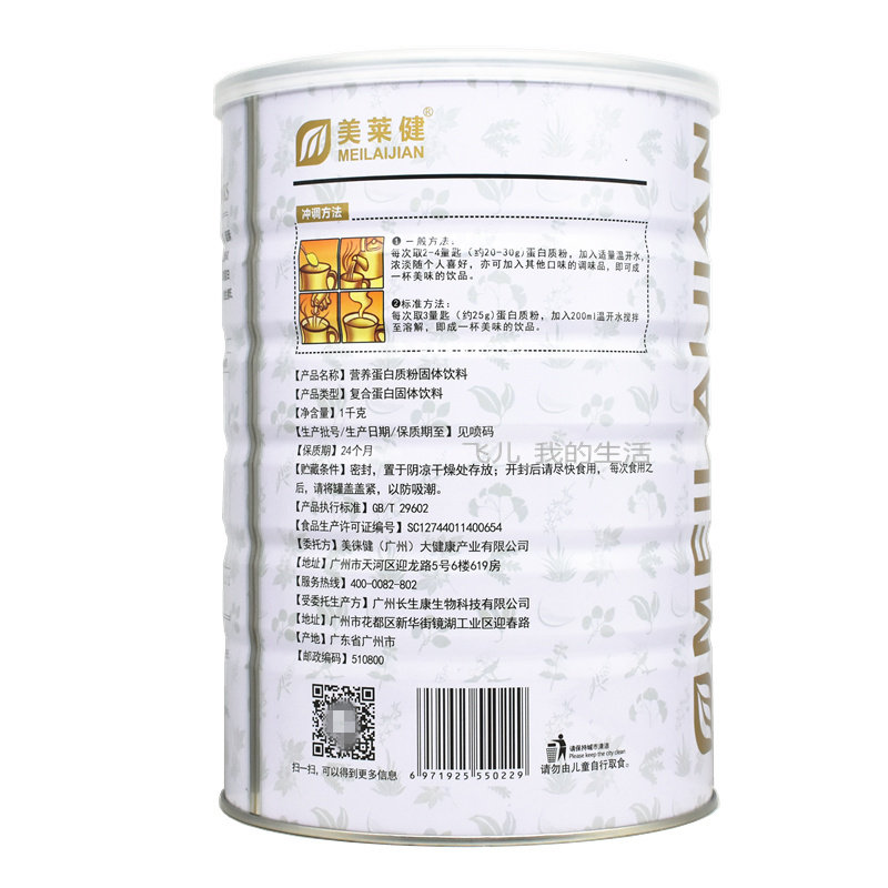 买1送1共2罐 美莱健营养蛋白质粉成人中老年营养再送杯子