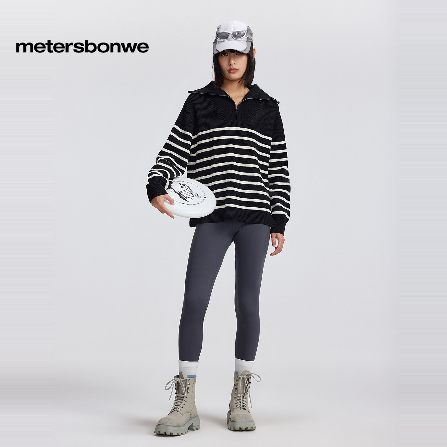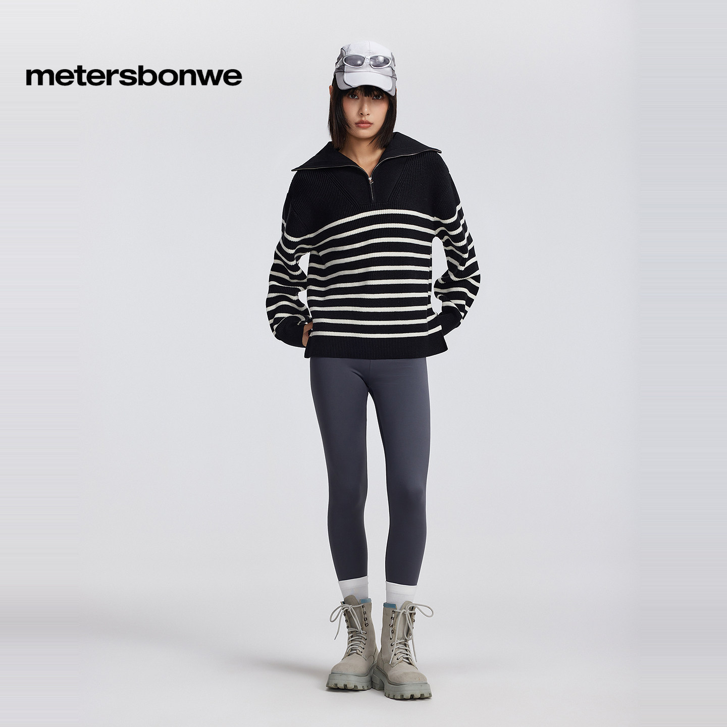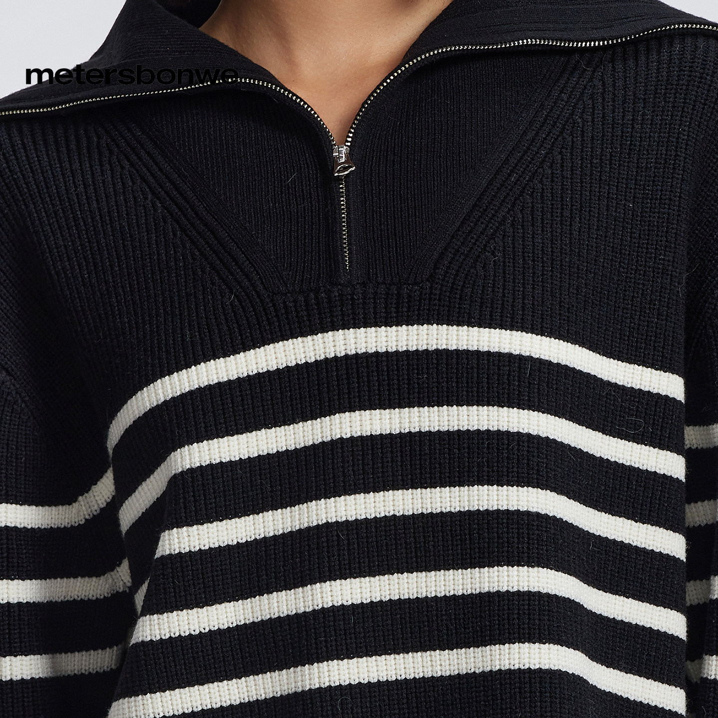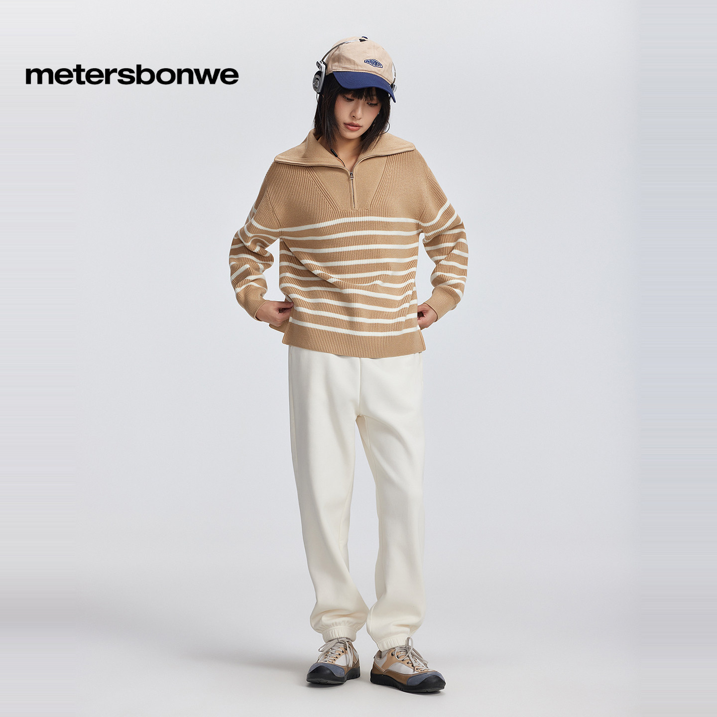 美特斯邦威毛衣女士秋冬季节百搭通勤纯色舒适半开翻领毛衫上衣