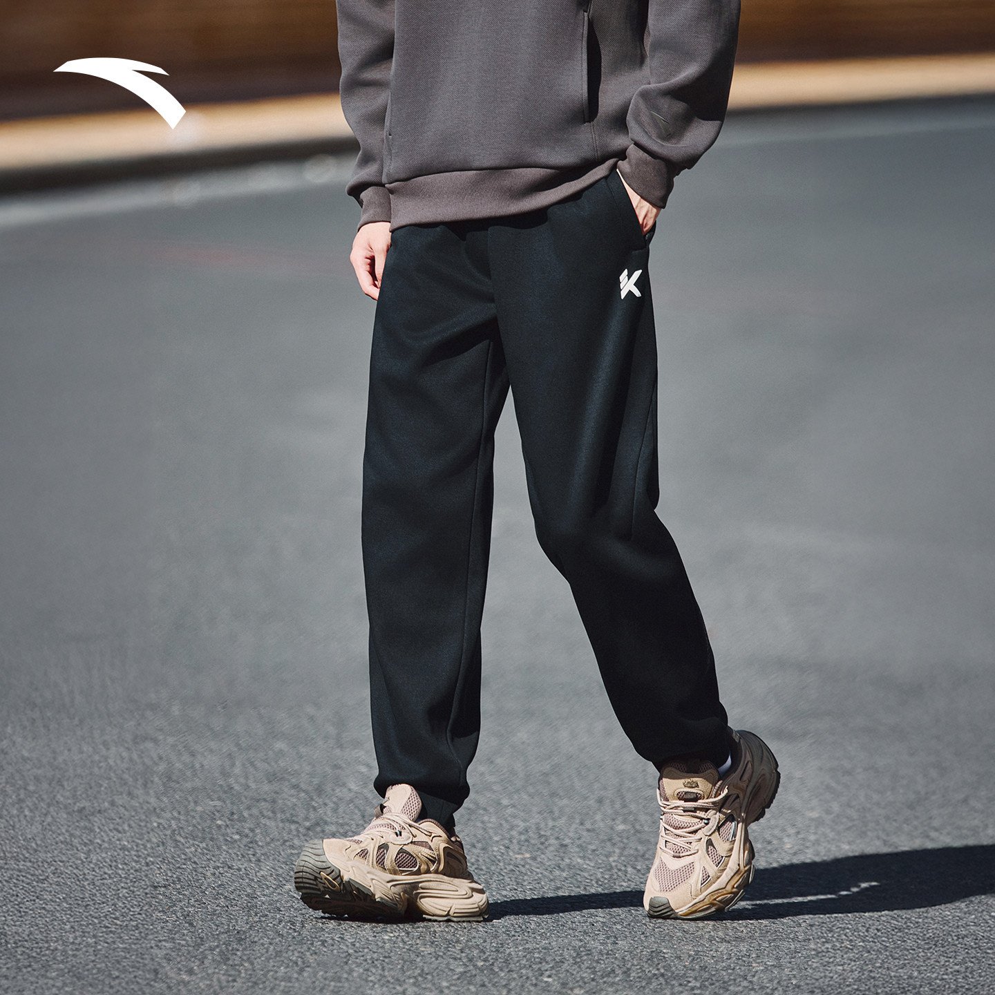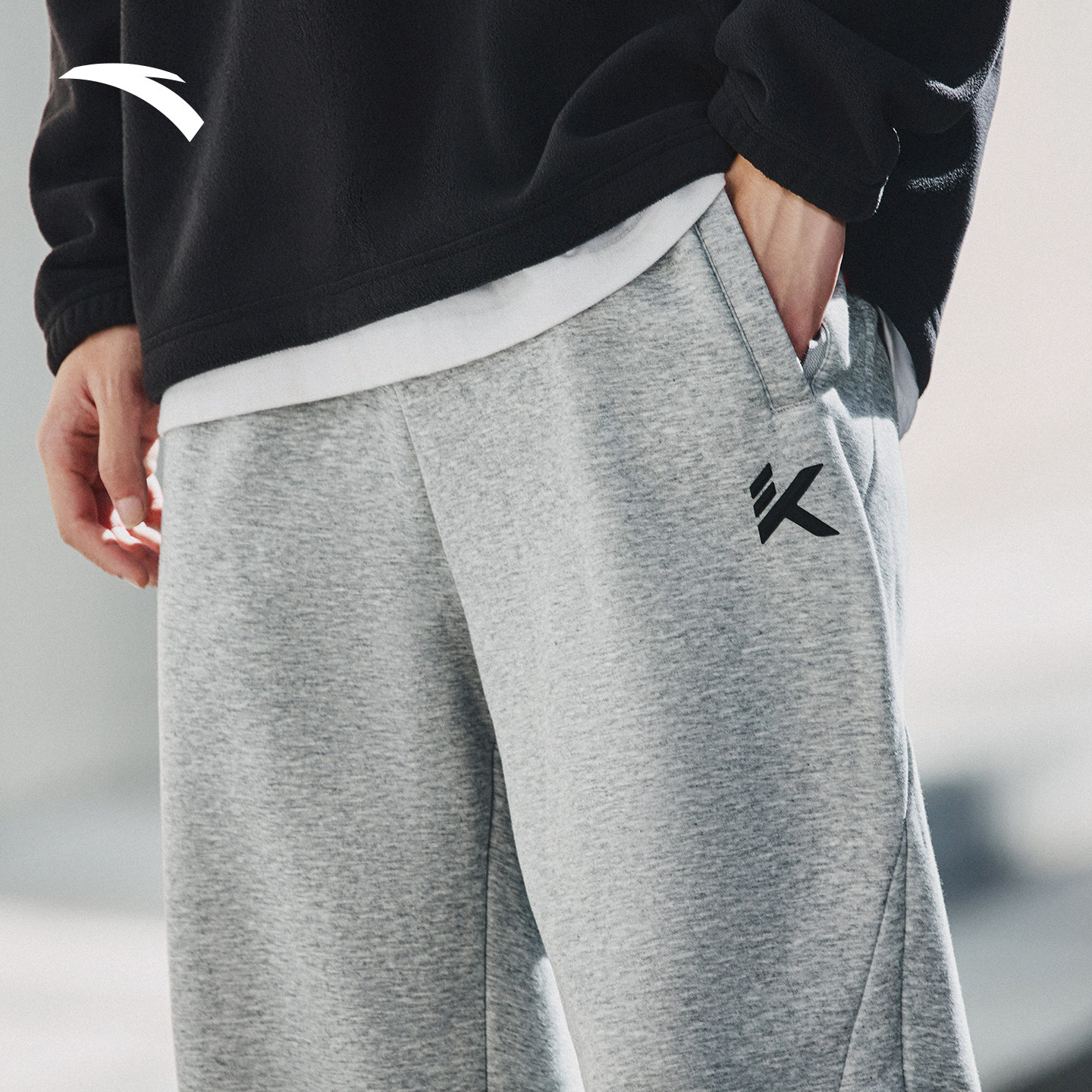 安踏KT运动卫裤男士冬季新款加绒灰色休闲长裤宽松束脚裤运动裤子