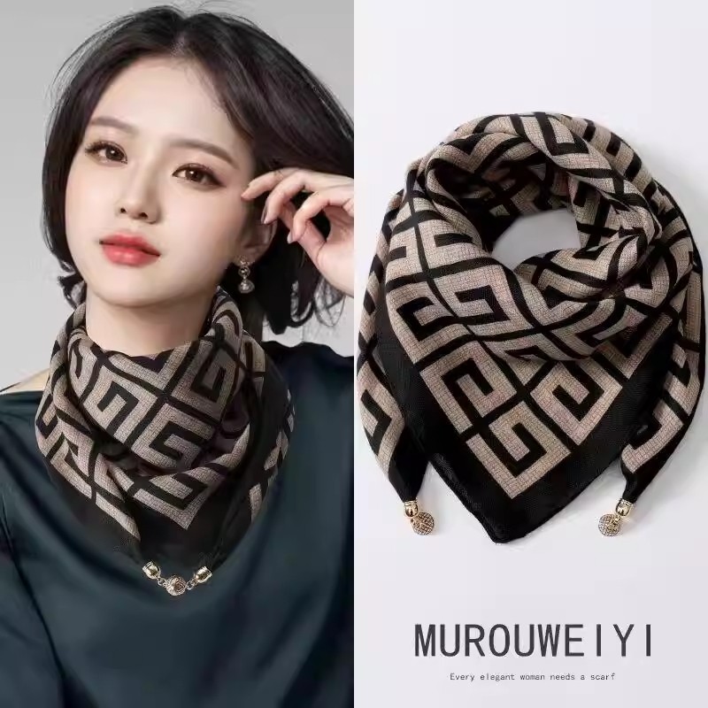 棉麻三角护颈围巾千鸟格2025新款春秋冬季丝巾防风围脖百搭方巾女